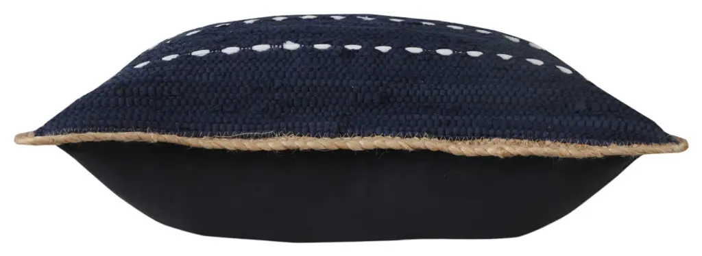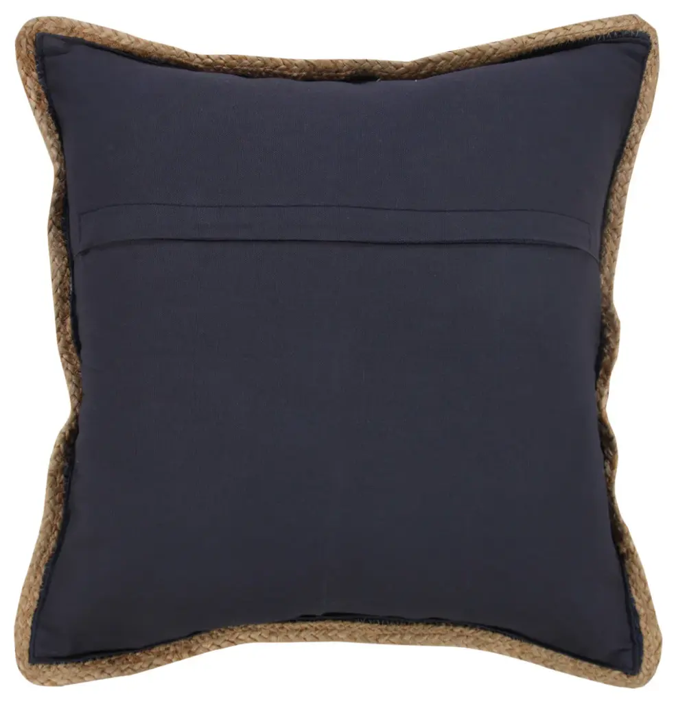 Designed to stand alone or layer with other accents, the Riley throw pillow brings a new dimension of style to your space. This versatile accent merges well with multiple home decor styles from boho to modern to coastal to country chic. The natural jute trimmed border and classic interwoven stripe cotton center combine to be a textured treasure with a pop of color. Crafted with care in India, each accent pillow is unique with its very own individuality. • TIMELESS TEXTURE: Enhance your home with every day contemporary style and a hint of rustic feel. This lumbar throw pillow features textured flanged edges of braided natural jute for a refined, natural look. • QUALITY CONSTRUCTION: Handmade in India with exceptional quality, this throw pillow features a woven cotton center with reinforced braided natural jute bordering. Reverse is solid with zipper. • VERSATILE STYLE: Classic navy blue and white tones allow this piece to span all seasons and various styles. It''s the perfect addition to any sofa, loveseat, couch, or bed in your living room, bedroom, nursery, or guest room. • PACKAGE INCLUDES: (1) 20" x 20" 85% Cotton and 15% Jute Decorative Throw Pillow Cover with Backside Zipper. Hand-Stuffed with Polyfil/Polyester Insert. • PLEASE NOTE: The digital images may vary due to differences in computer monitors, some colors may vary slightly. • CLEANING AND CARE: Spot Clean. Do not pull loose fiber, clip and remove loose ends with scissors. Zipper Closure for Easy Insert Removal.