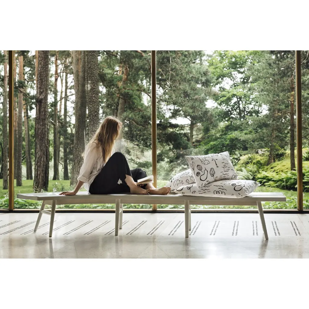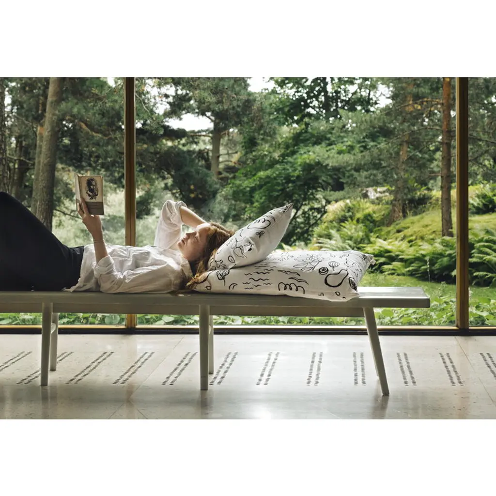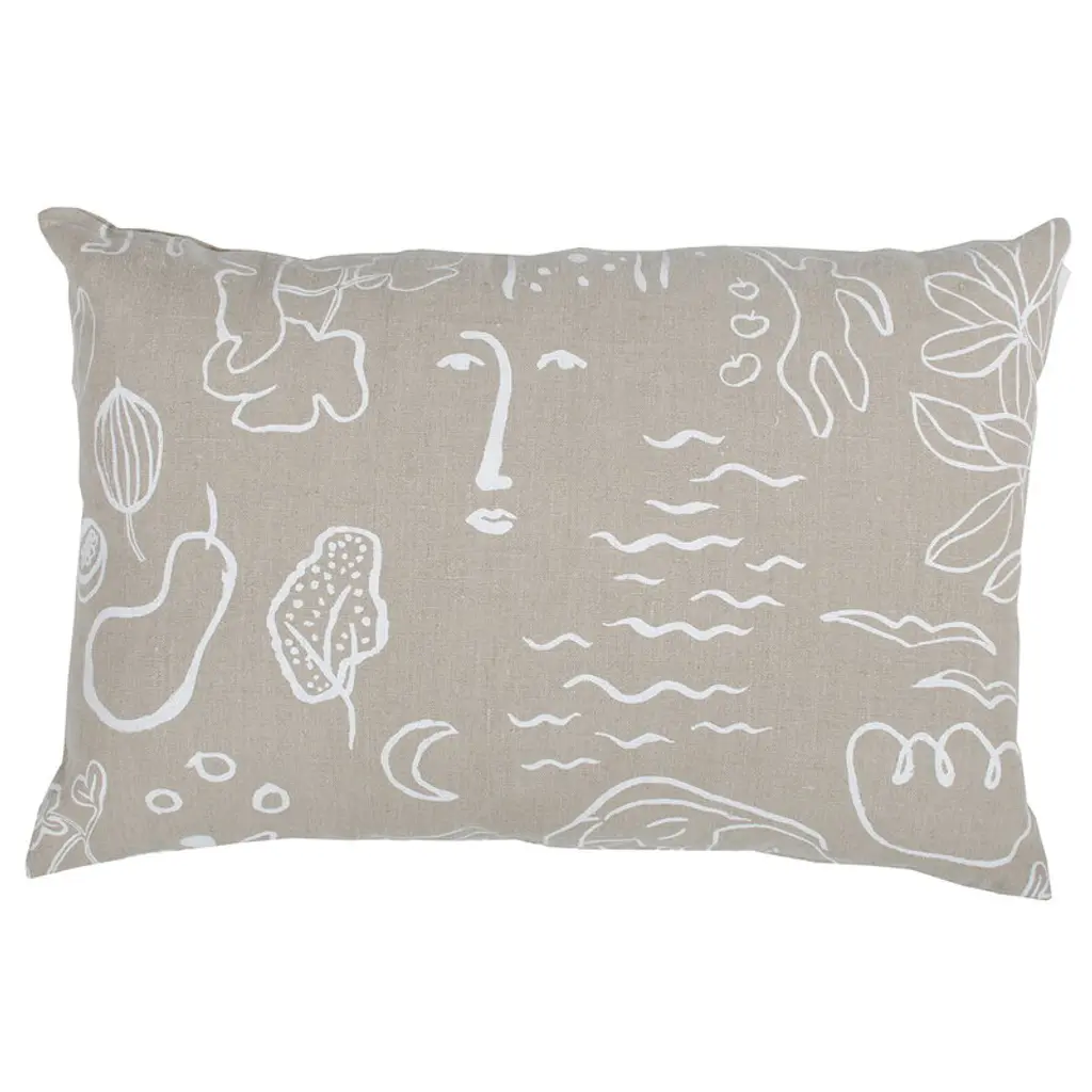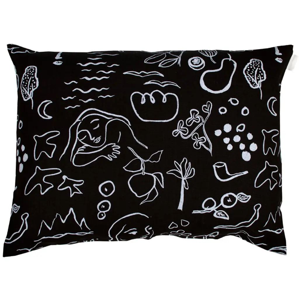 The Onnenmaa cushion cover by Saana ja Olli features an organic pattern formed by human figures, plants and other elements of nature. Painted with loose brushstrokes, Onnenmaa (”Arcadia”) sketches a dream-like safe space from the unstable world situation. All Saana ja Olli products are made from durable 100% hemp fabric and they are suitable for everyday life. The products are transparently manufactured in Finland.