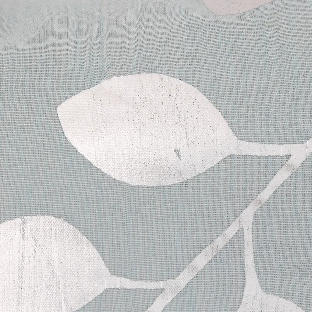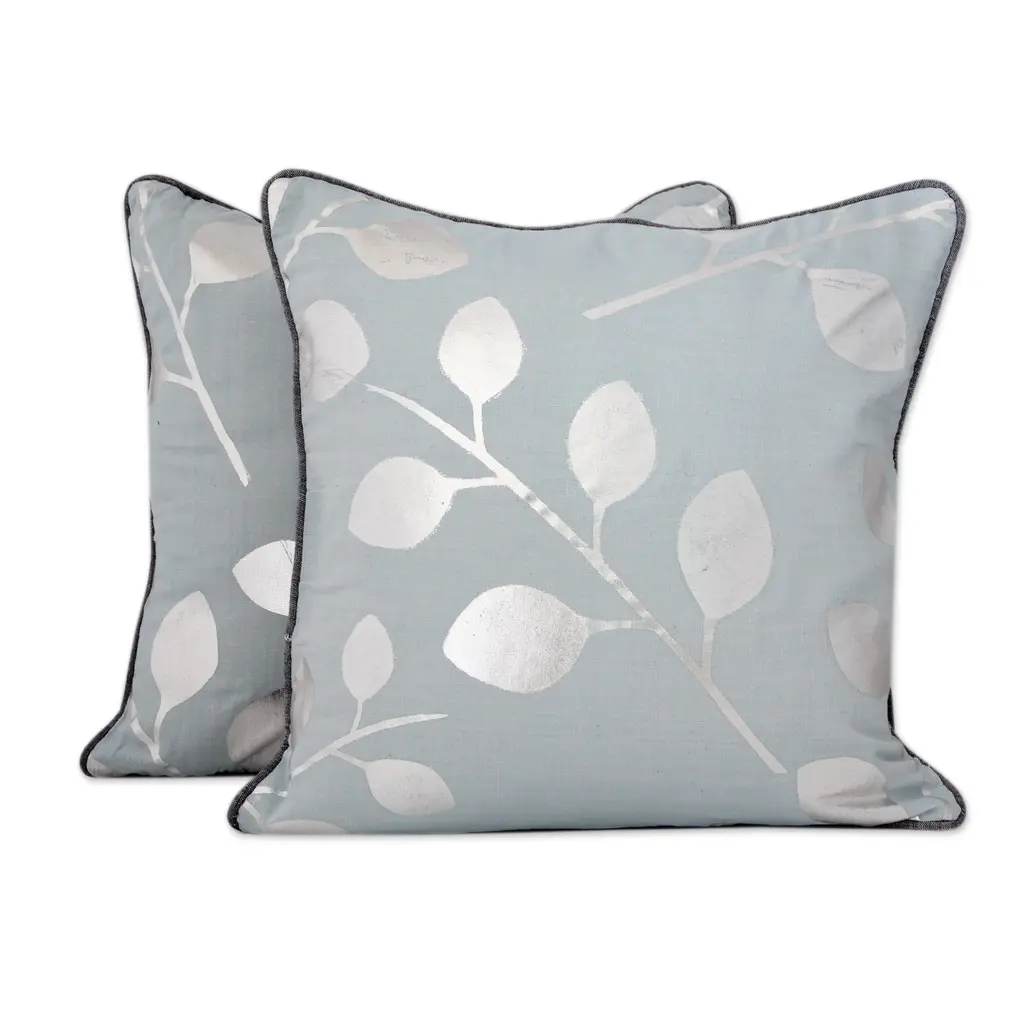 Pale Blue Cotton Cushion Covers With Silver Leaves (Pair)- Drifting Leaves
