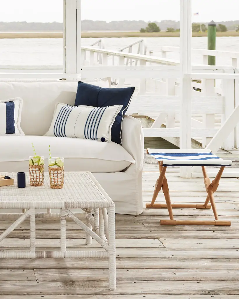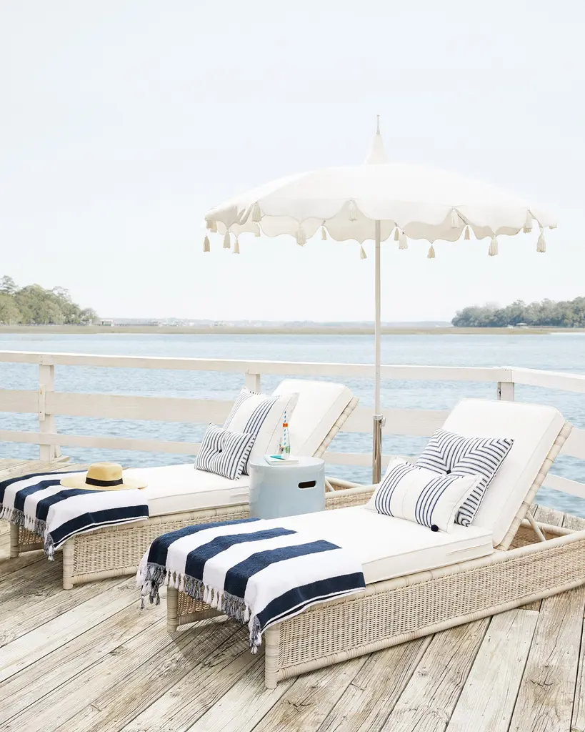 We’ll never tire of classic stripes. With a surprisingly luxurious feel, our pillow is wonderfully resistant to sun and moisture, making it last season after season. A micro flange gives a tailored finish and a playful pom rounds out the look.