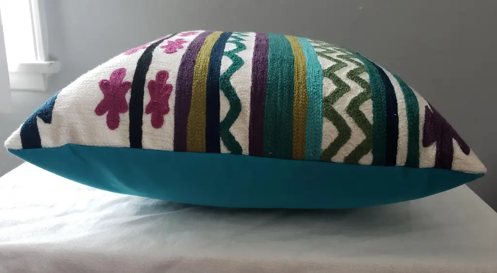 Pierre Frey Anoki fabric on front. Knoll Ultrasuede back fabric. Size: 18 x 18 Pillow cover only. Dry clean only. Fabric information: Manufacturer:Pierre Frey Brand:Pierre Frey Pattern Name:Anoki Pattern Number:F3229001 Color:Pulsation SPECIFICATIONS- Vertical Repeat:3.94" Content:65% Wool, 35% Cotton Width:51.18" Horizontal Repeat:25.2" Match:Free Country Of Origin:France