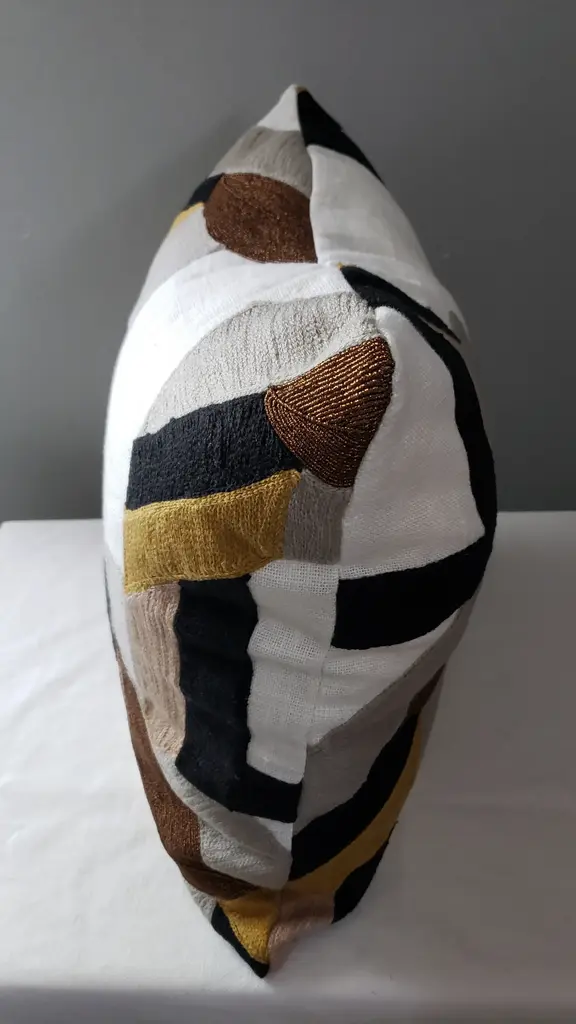 Pierre Frey Cosma Argento Oro Fabric on both sides. Size: 18 x 18 Hidden zipper. Pillow Cover Only. Dry Clean Only. Pierre Frey Fabric Information: COSMA I6607001 - Argento Oro Fadini Borghi - Maharani collection TYPE: Embroideries COMPOSITION 75 % Linen 15 % Acrylic 10 % metallised yarn Lurex WIDTH: 134 cm - 52,75 inch REPEAT H : 32 cm - 12.59 inch V : 82 cm - 32.28 inch Straight repeat