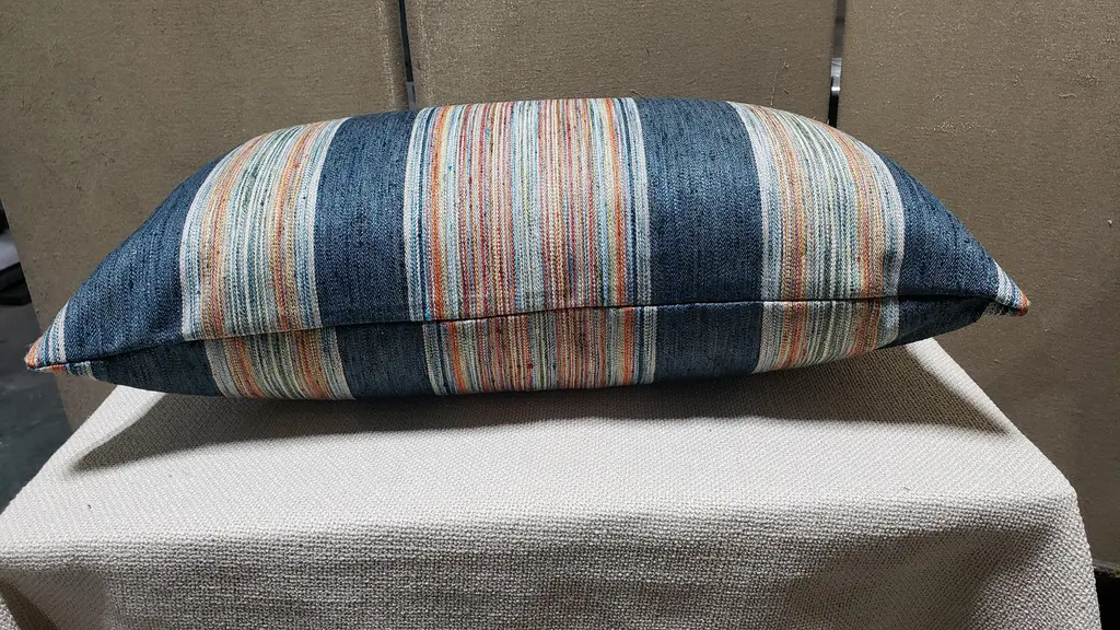 Pindler Duvall fabric double sides Size: 24" W x 14"Ht Hidden zipper Pillow cover only. Dry clean only. Pindler fabric information: SKU PD-DUV004-BL01 Product Type :Fabric Manufacturer: Pindler Fabric Categories :Blue/Light Blue Fabric Item Number: DUV004-BL01 Pattern Name: Duvall Pattern Number: 5000 Color Name: Navy Width: 54 inches Style: Stripe Use Multi Unit Of Measure Yard Horizontal Repeat: 13.75 inches Country of Origin: INDIA Content: 100% Polyester Durability Astm D4157 Wyzenbeek 51,000 Dbl Rubs Heavy Duty