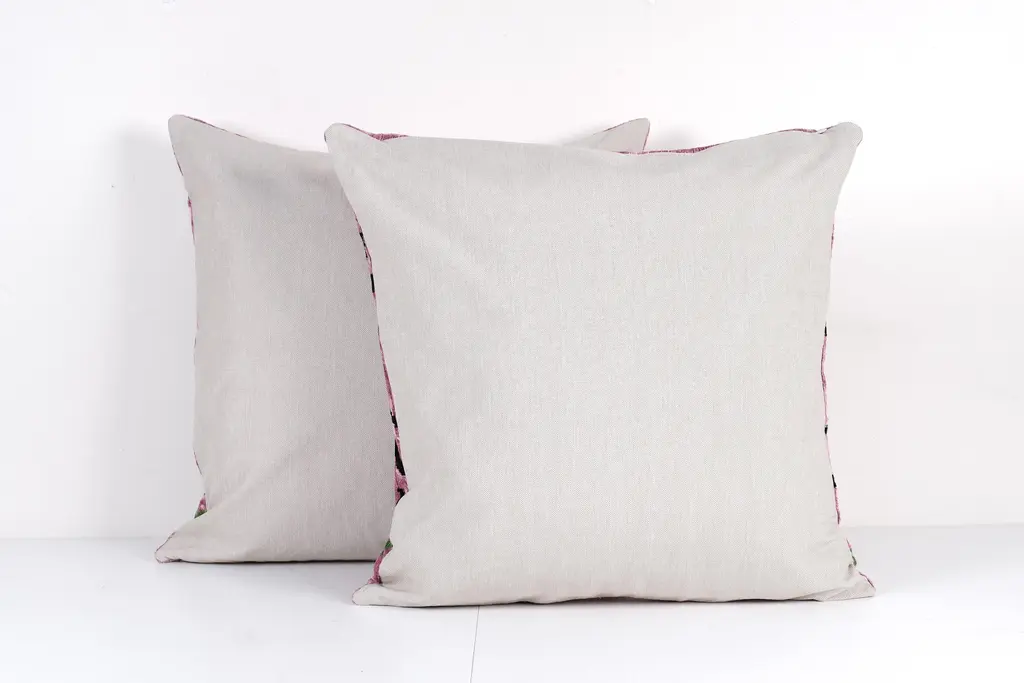 "Decorative Throw Velvet Ikat Pillow -Luxurious cushion cover of handloomed ikat fabric -Insert is NOT included -Color: Pink and Green -Ikat is an beautiful fabric, every pillow is unique but can also contain small imperfections; the charm of a handmade product. Dimensions: 24ʺW(62 Cm) × 6.0ʺD(15 Cm) × 24ʺH( 62 Cm) approx Warning: Since ikat is a handmade fabric, the width and length of the throw pillow can be a few inches smaller or larger. -Handloom 80% silk velvet 20% cotton -Back side is cotton fabric and with hidden zipper. -Handwoven velvet pillow case only, -Hand wash 30 C or dry clean -Colors may be slightly different in reality from those shown on the photos, due to the nature of photographing and device monitor settings. -Custom duties may apply."