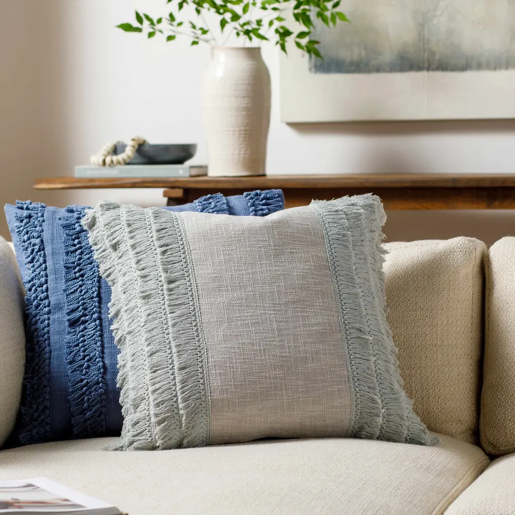 Pototan Light Gray Fringe Texture Throw Pillow - Clearance - 14"h X 22"w Lumbar Pillow Cover