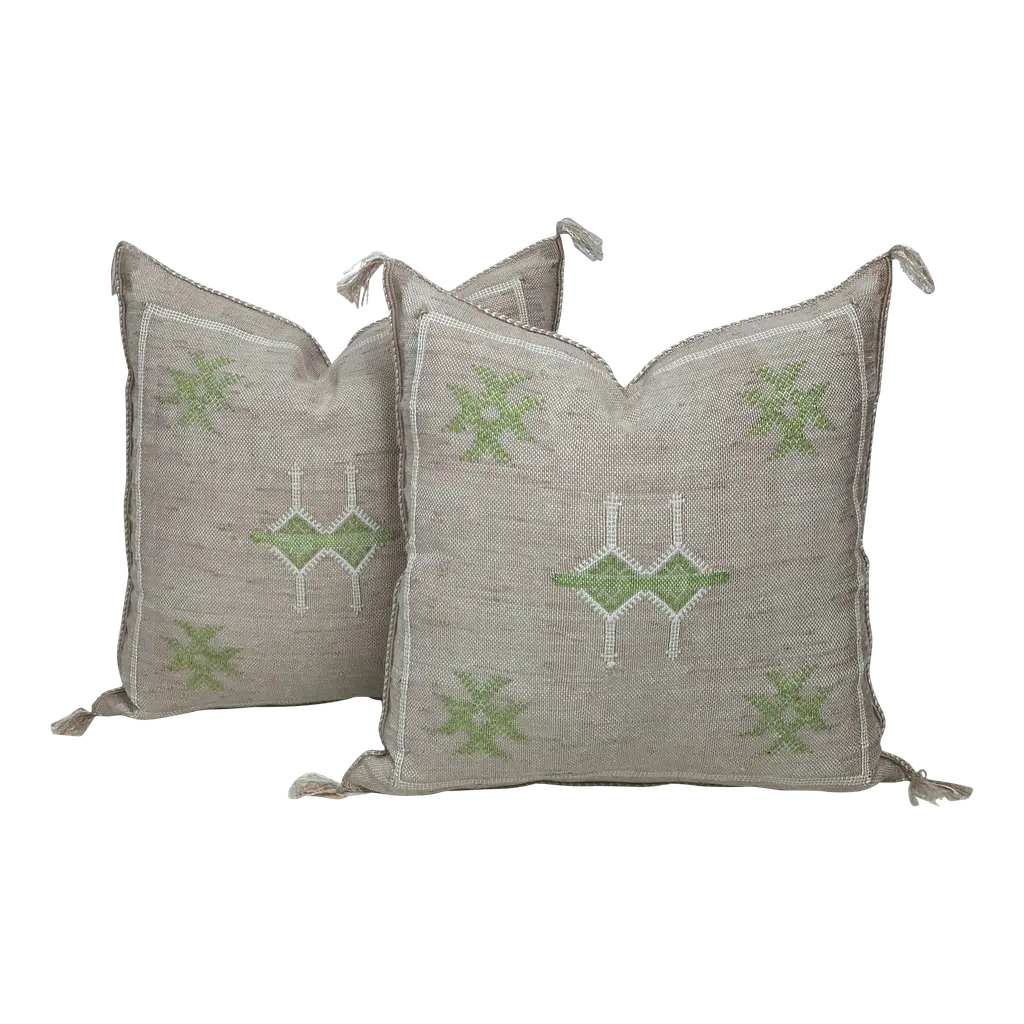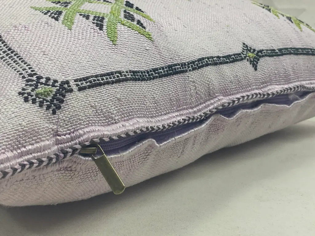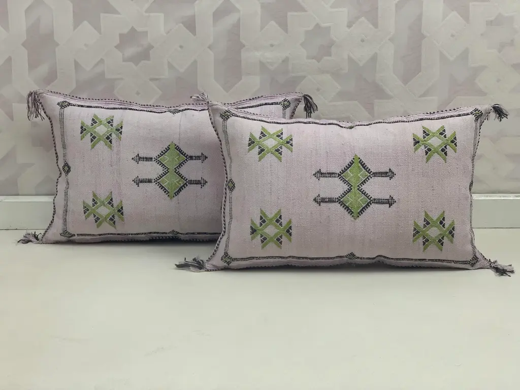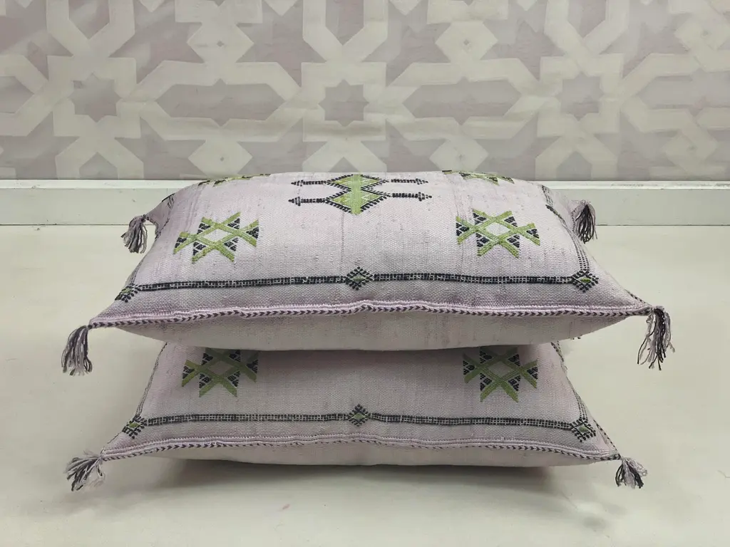 Decorative pillow cover Note Please note that these pillows are made by hand, so they may differ slightly from each other in decoration, shades or color. As each pillow is hand woven and hand dyed, there will be natural slight variations in size and braided color from the image shown. Bringing a little sunshine ☀️ your way today! Local villagers harvest the leaves of the Sabra Cactus plant for the filaments within, and loom the textural canvas into patterns of ancient motifs! Great story! This cactus silk pillow was handwoven from silk from the sabra cactus plant. Each pillow is unique with their berber symbols and are one of a kind. ——— ITEM DETAILS ——— Place of Origin: Morocco State: Excellent / New Color: purple - You will receive the same pillow color as shown in the product description! Origin : Moroccan Atlas Mountains Berber tribe Size: Approx. 13" x 20" (33 x 50 cm) (+/- 2 inch due to the handmade nature of the item). Price is not including the pillow inside Features: Moroccan cactus pillow handcrafted by local Berber artisans This patterned pillow is a unique piece of art. - 100% handmade and handwoven. - This pillow is Moroccan made, handcrafted from Aloe Vera silk, commonly known as vegetable silk, Sabra silk. - No chemicals were used in the weaving process. - Zipper on one side. - Mixed inscriptions at the front. - Please note: Handmade items are not factory made. These pillows may have minor imperfections this adds to their vintage or handmade charm. - This is a 100% handmade sabra pillow. Washing Instructions: Dry Clean Only, Avoid Contact With Water. Product advantages: When you buy a natural, handcrafted product, you will be contributing to the preservation of the environment, How to stuff: Product is shipped unstuffed. Can be stuffed using an economical way by using old clothing or bedding material such as comforters and blankets. For a firmer support, a foam insert can be used. We use TWO memory foam pillows to create a firm top and a comforter. Our products are handcrafted by artisans using traditional techniques. while each piece is created by an expert in their craft, handmade and vintage items are perfectly imperfect. there may be minor imperfections such as fading colors, loose threads, or wear. we believe these characteristics are all part of the story behind the product and the artisan that crafted it, making it truly unique. we hope you do too! ✈️✈️✈️ Shipping ✈️✈️✈️ FREE shipping in the WHOLE WORLD. Buyers are responsible for any Customs or Duty fees incurred. Shipping methods : DHL Express “Door to Door” for your convenience 2-5 Business days after handling time anywhere in the WHOLE WORLD, our shipments are secure and insured for lost; a tracking number will be provided to track your package. Please ask ALL questions before buying! ❓❓❓ ARE FLOOR CUSHIONS CLEANED? Yes, all floor cushions are carefully cleaned before they are shipped off to their new owners. ⭐️⭐️Note ⭐️⭐️ Note: We have done our best to capture precise colors, but know that the colors may vary based on the display screen and lighting (natural vs low lighting). If you would like any inquiries, please do not hesitate. I can send more pictures to you if you want to have another better idea of the look,