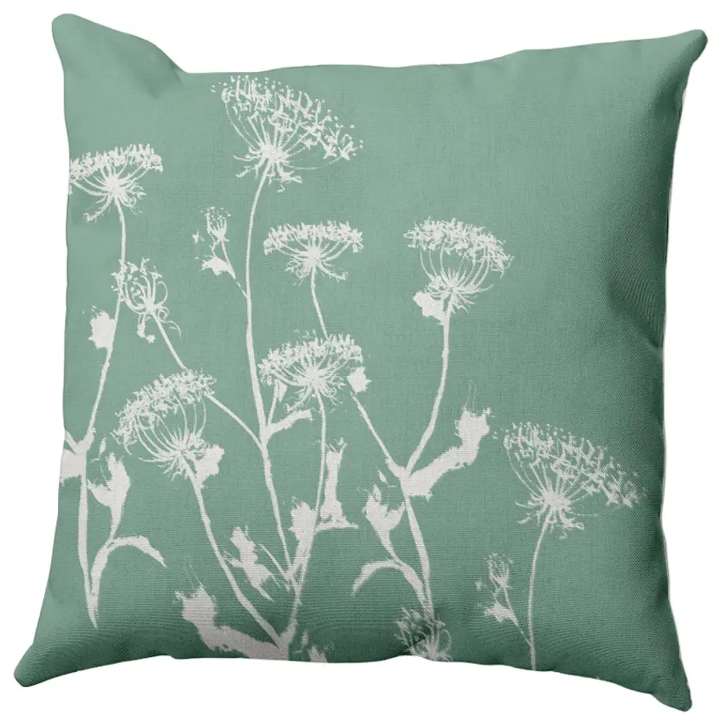 Marimekko's Putkinotko cushion cover radiates a beautiful autumn atmosphere in elegant shades of olive green and white. Part of Maija Isola’s Luonto (Nature) series, the pattern depicts cow parsley in its autumn guise: the leaves have withered away, leaving behind only the slender stems and distinctive seed clusters. Isola designed the Putkinotko print in 1957. The Putkinotko cushion cover is made from breathable cotton that feels lovely against the skin. Please note that the inner cushion for the 19.69 x 19.69 in (50 x 50 cm) pillowcase is available separately.