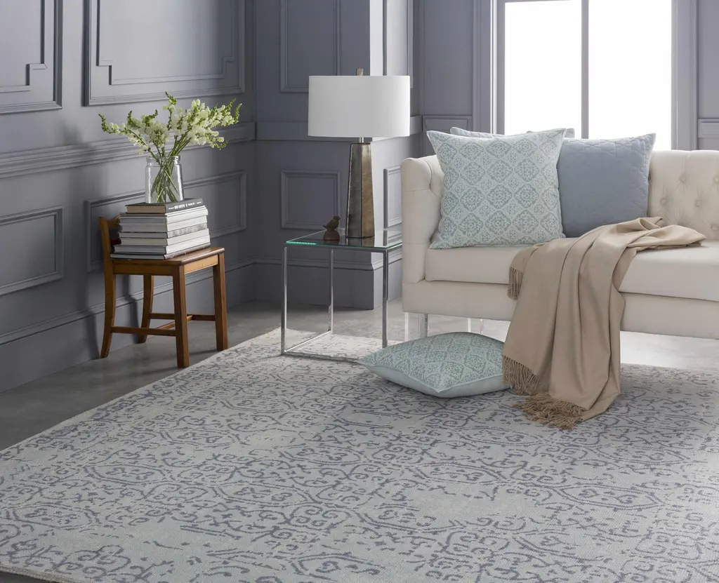 Collection: Rangewood Colors: Pale Blue, Silver Gray Construction: Woven Material: Front: 55% Linen,Front: 45% Cotton,Back: 55% Linen,Back: 45% Cotton Styles: Traditional,Contemporary Made In: India
