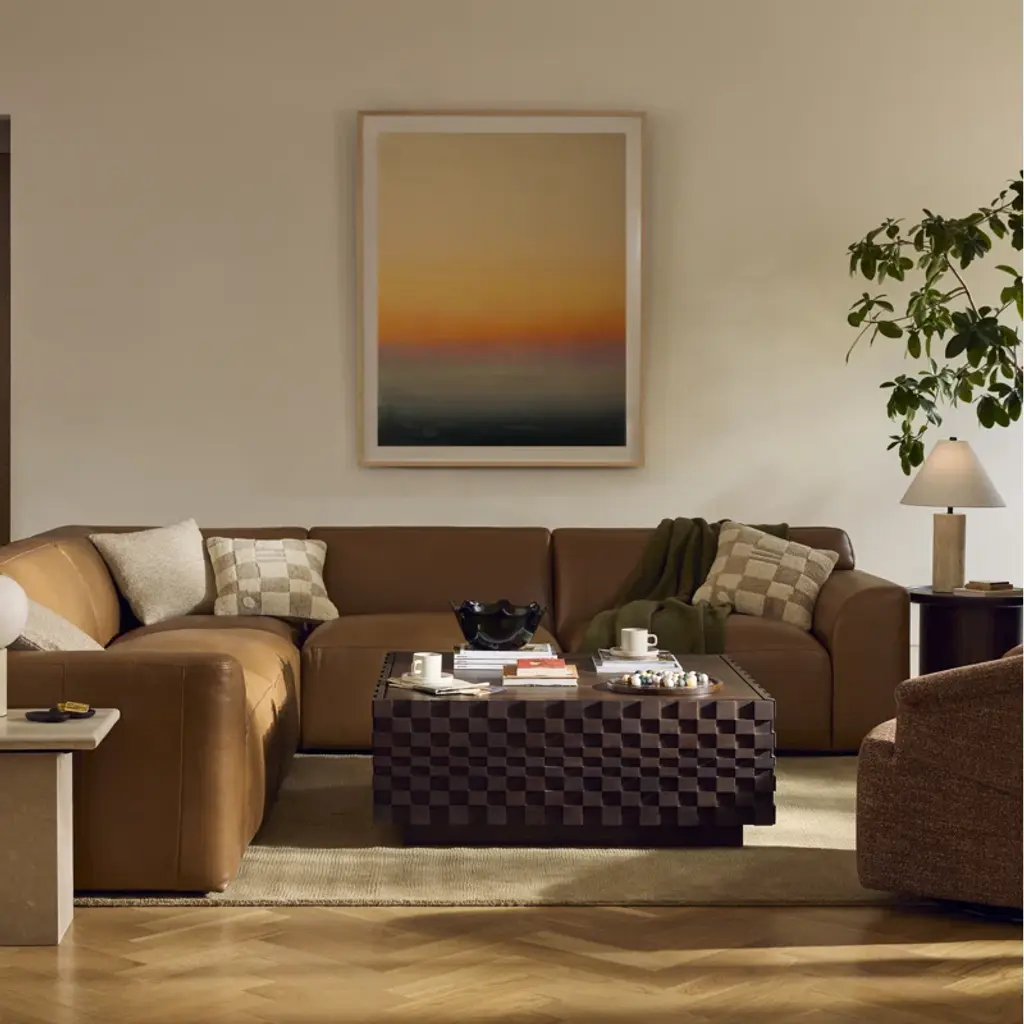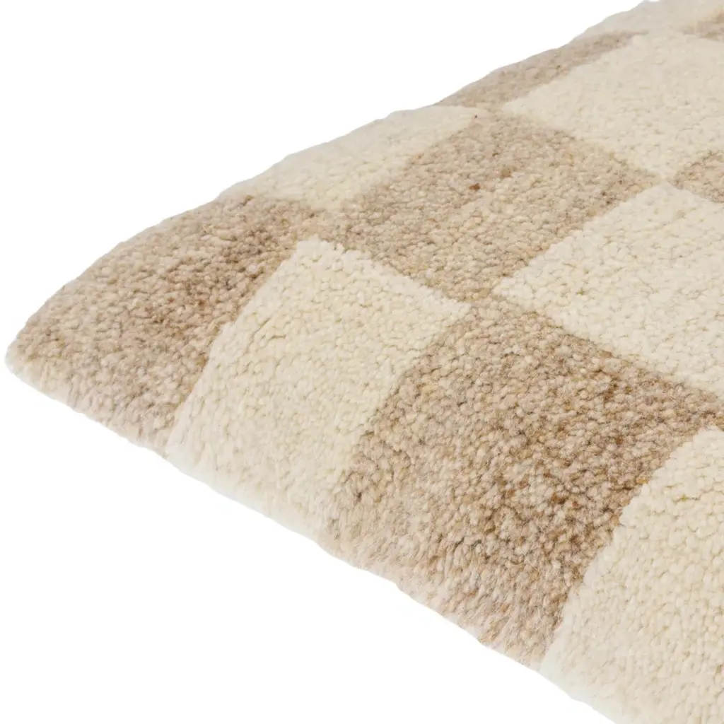 Outside the box. Organic variations disrupt the checkerboard design of this throw pillow cover, offering an artful + unexpected twist on the classic pattern. It’s crafted from a cozy blend of wool + cotton in a palette of warm neutral hues. A zippered closure secures the insert of your choice – or you have the option to get the cover on its own + refresh an existing pillow.