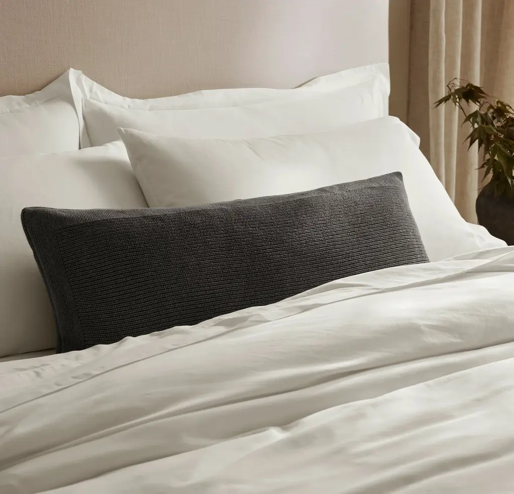 This pillow cover completes your bed look with a modern-yet-cozy textured knit. It starts with the highest quality yarns sourced from the finest long-staple 100% organic cotton on earth. Each yarn is then luxuriously engineered in a ribbed pattern for a sumptuous, dimensional feel. The Feel Cozy, sumptuous, midweight knit The Look Modern ribbed pattern for dimensional texture