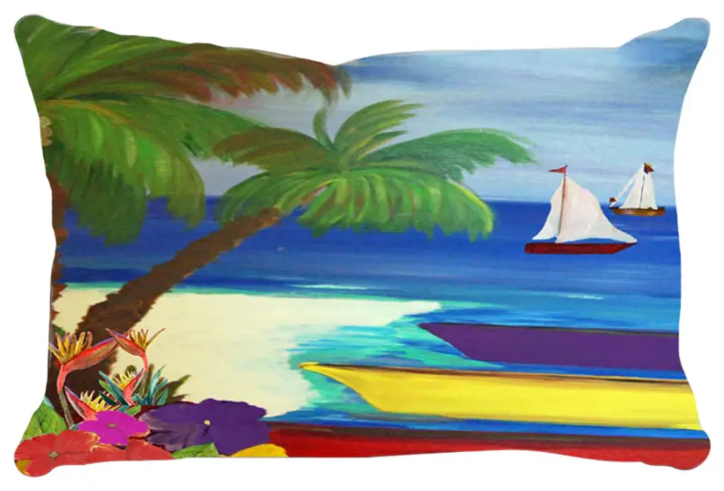 Sailboats, Nautical Art Lumbar Throw Pillows, Boats Beach Docked