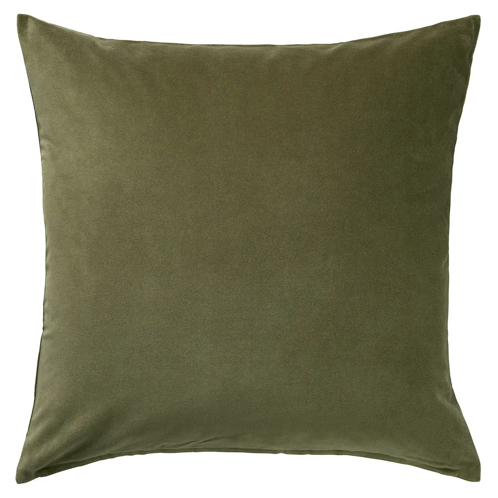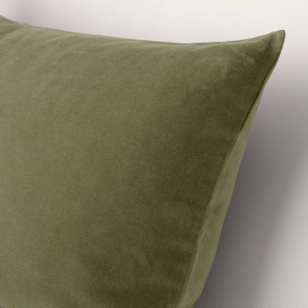 SANELA Cushion cover - olive-green 20x20 ". Cotton velvet gives depth to the color and is soft to the touch. The zipper makes the cover easy to remove. Fits inner cushions 19⅝x19⅝".