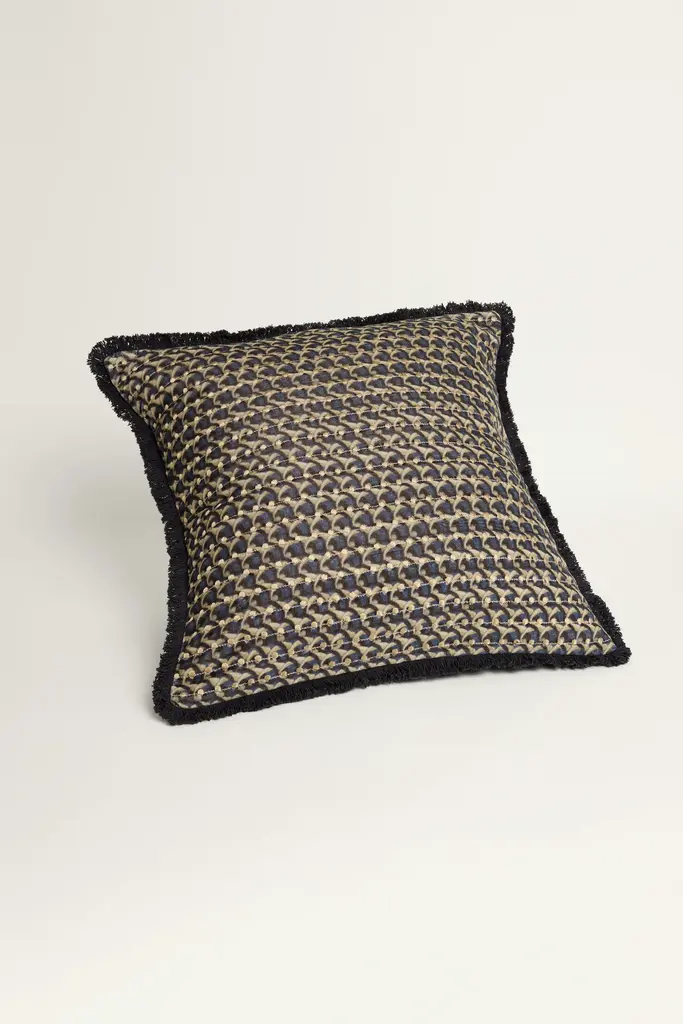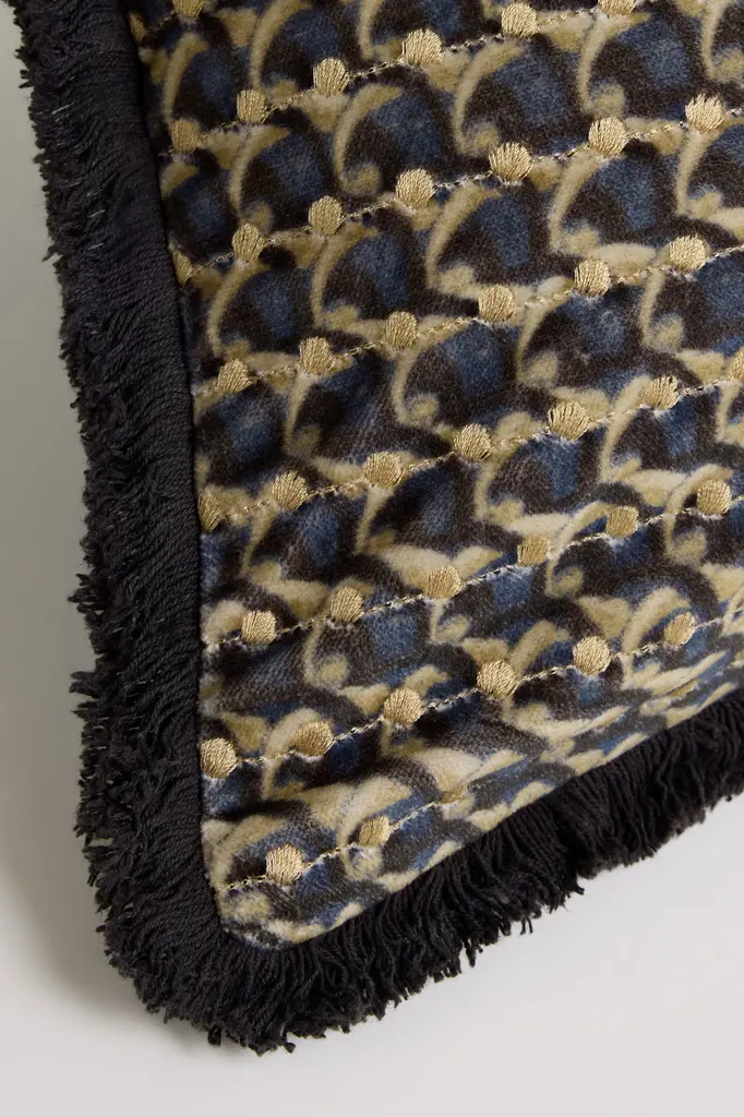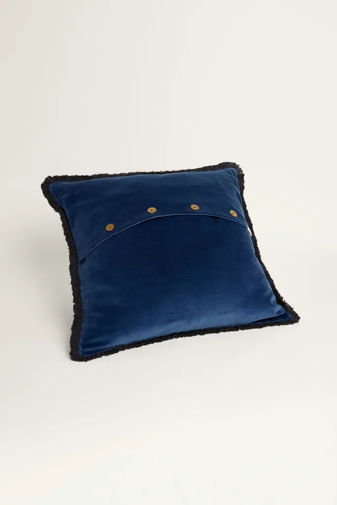 Inspired by the scalloped detailing which recurs through Jaipur’s City Palace, the Sawai cushion cover is named for the Maharaja Sawai who oversaw the landmark’s construction. Eye-catching gilt embroidery adds a further tactile dimension to this cushion cover’s strikingly patterned soft velvet, along with gentle fringed edging.Composition: 98% Cotton / 2% Viscose