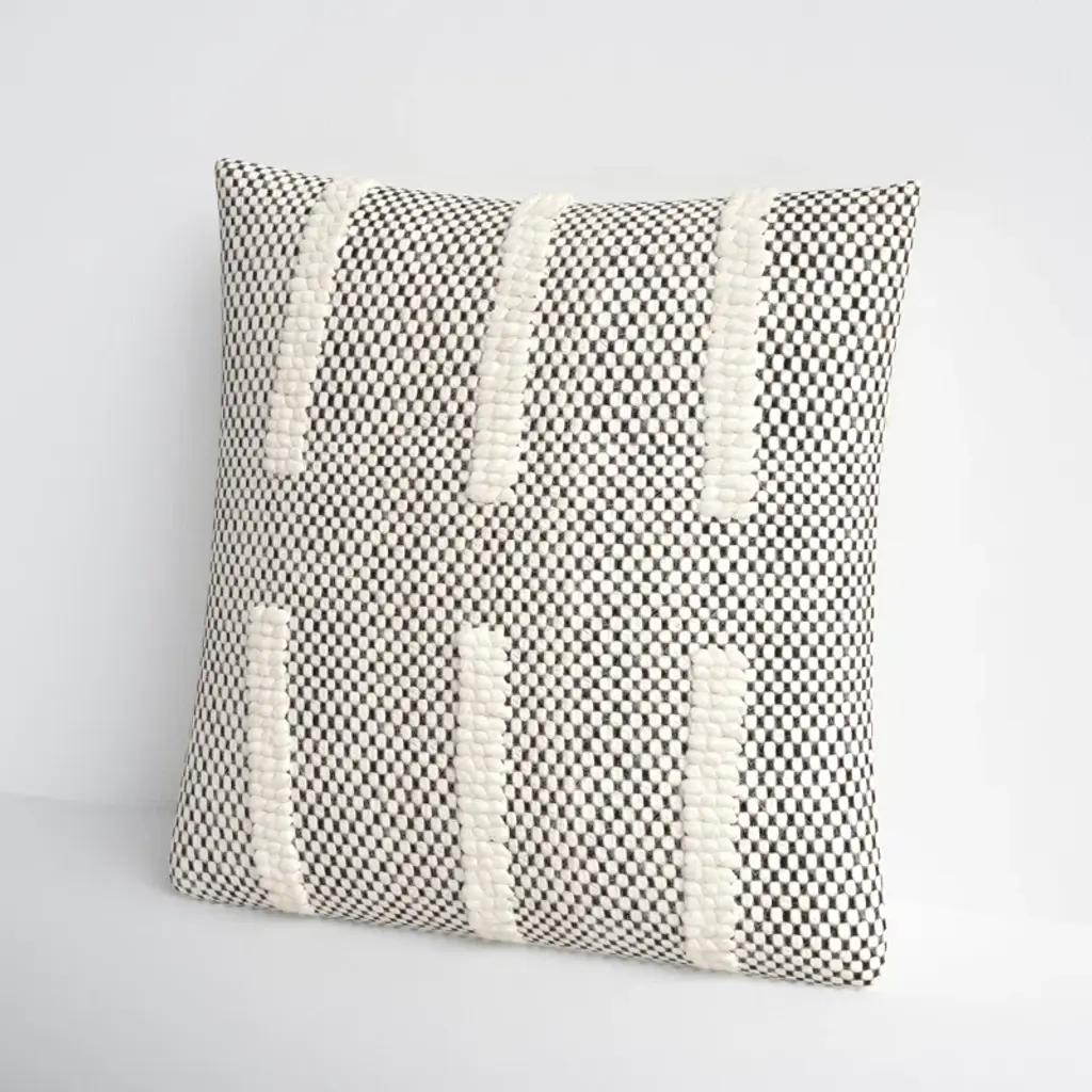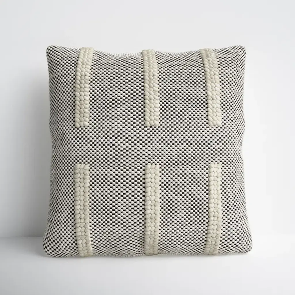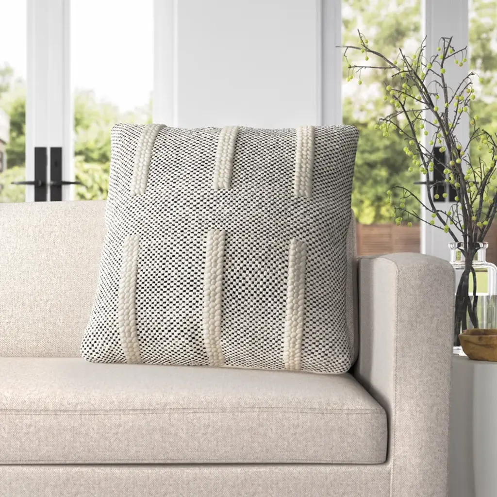This throw pillow cover combines a neutral color palette with a bold pattern to create a design that fits in almost anywhere. It's made from cotton and has a series of thick textured stripes on a black and white background. This pillow cover doesn't include an insert, but that just means you get to customize how firm or plush it is. Thanks to the zipper closure, it's easy to insert your favorite pillow. And with two different size options, this square pillow cover offers even more versatility.