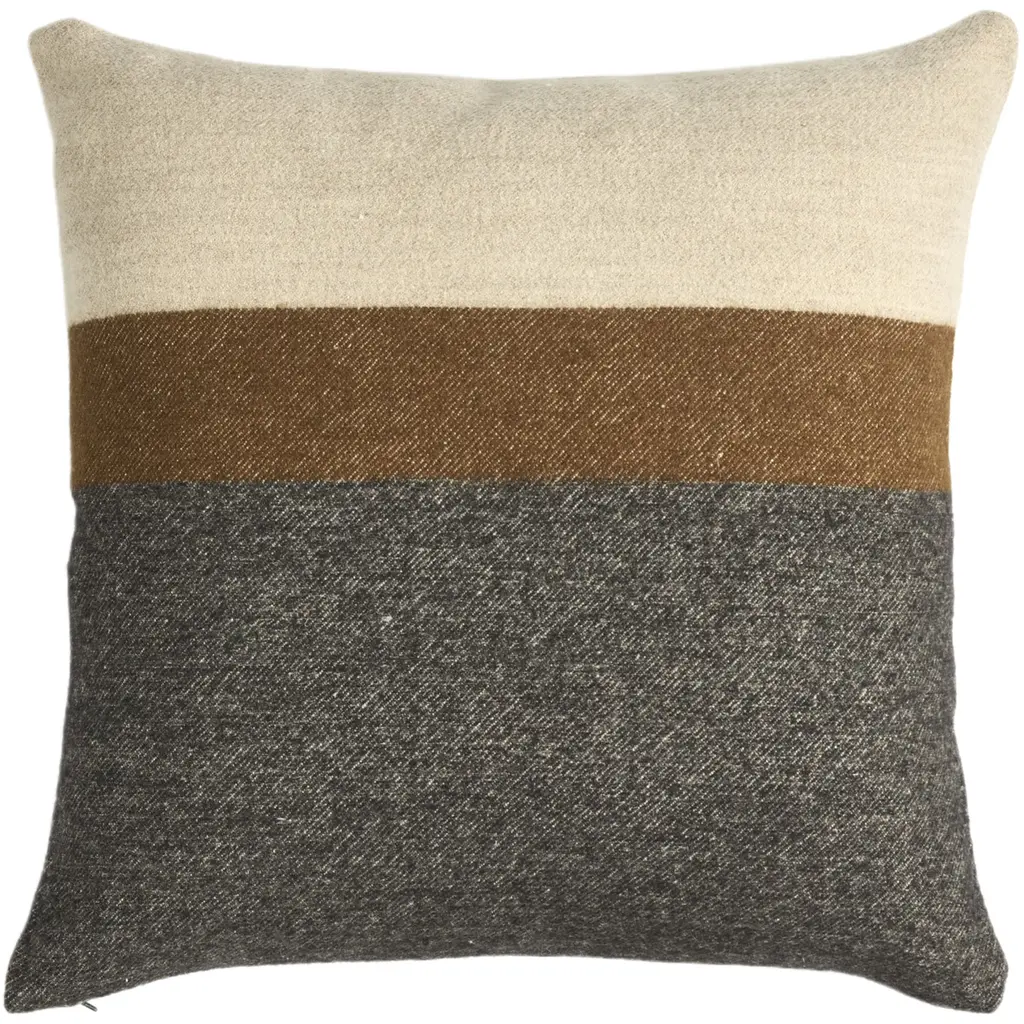 Selma Wool Blend Stripe 23"x23" Carmelo Tan Throw Pillow With Down-Alternative Insert