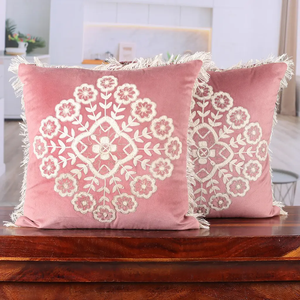 Dream elegantly with our deep burgundy red multi colorful patchwork quilted pattern throw pillow covers for a tasteful look added to your bedroom.Accented with paisley floral garden patchwork squares and a burgundy red velvet trim along the border. There are hints of wine red, pale yellow, lavender and purple shades making a beautiful and unique masterpiece.Soft to the touch feeling will give you a luxurious night"™s sleep.We hope to give your rooms a vibrant and whimsical atmosphere with our covers. Zipper is hidden underneath the detail flap on reverse side, which makes the insertion easy. Cover holds 20 inches pillow insert (not included).Soft to the touchPaisley Floral Pattern with Velvet trim along the coverMakes a Gorgeous Gift!Included - Two Square Cushion Covers PiecesDimensions - 18" x 18" SquareMaterial - 100% CottonWe also sell matching Quilt Sets sold separately to match these cushion cover/accent covers beautifully! Washing Care Instructions:Machine wash with gentle cycle in cold waterDo not bleach, tumble dry in low cycle & remove promptly Line bedspread to air dry for best results