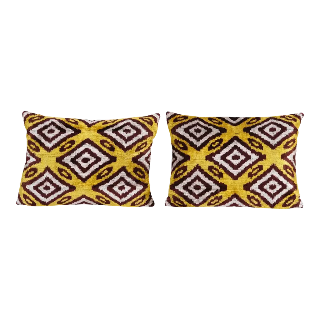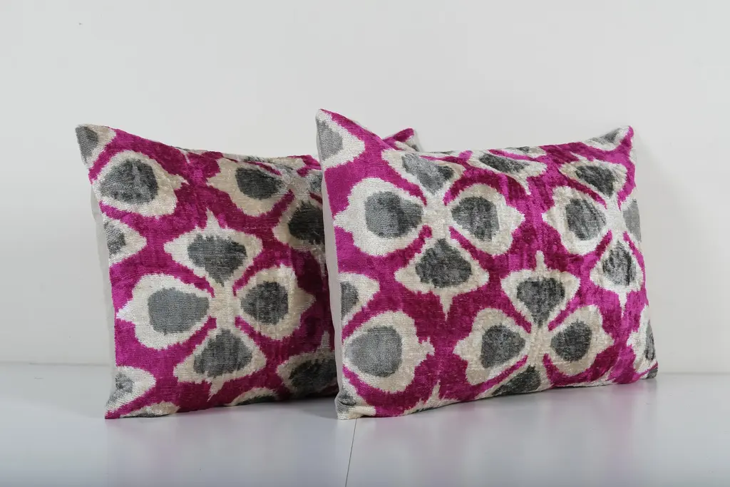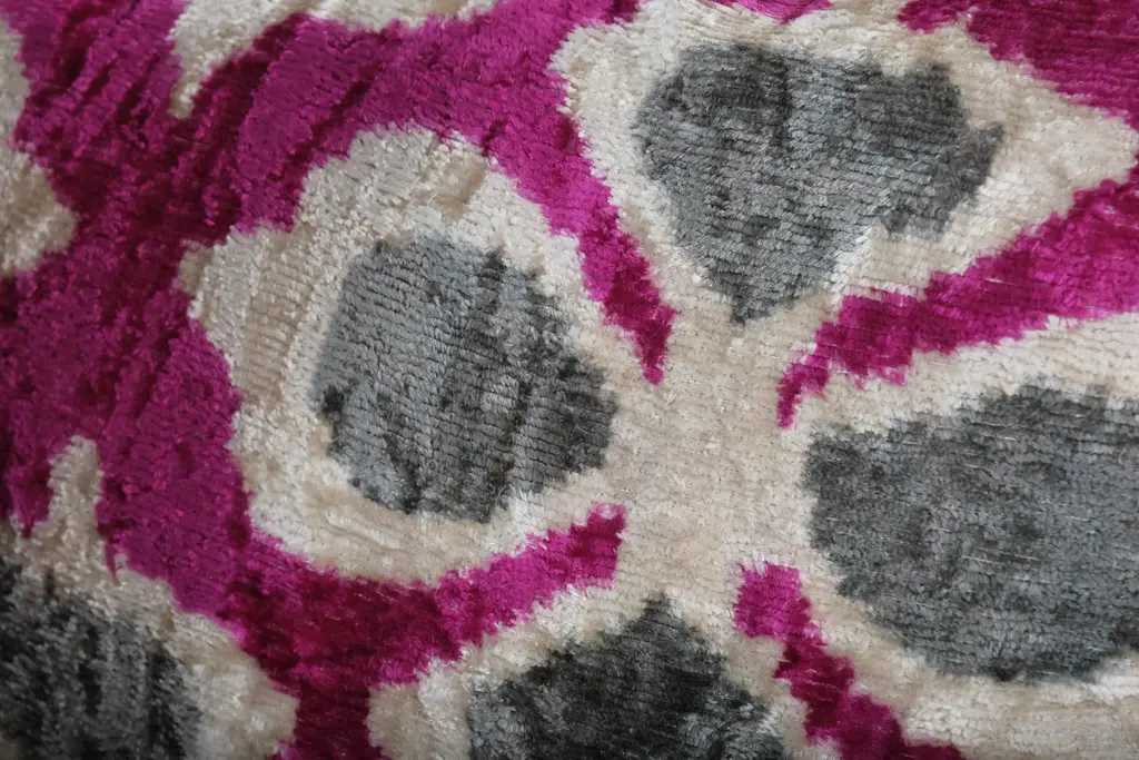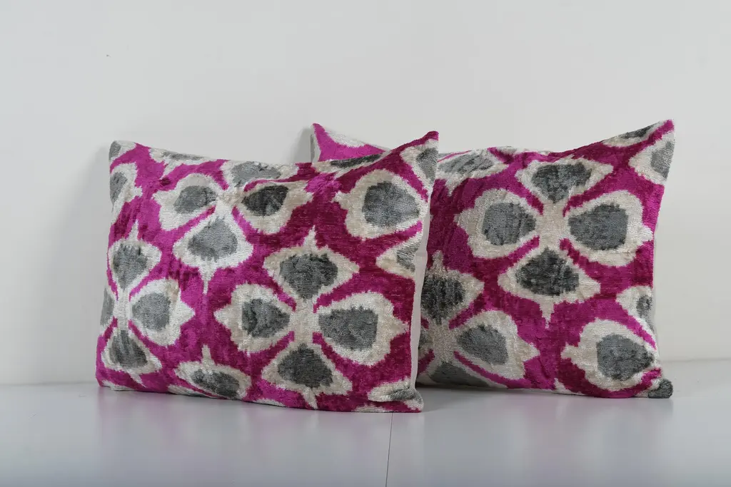 Silk Velvet Cushion - Fuchsia Ikat Pillow Cover - A Pair