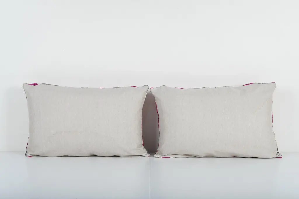 Silk Velvet Cushion - Fuchsia Ikat Pillow Cover - A Pair -Luxurious cushion cover of handloomed ikat fabric -Insert is NOT included -Color: Fuchsia and Beige -Ikat is an beautiful fabric, every pillow is unique but can also contain small imperfections; the charm of a handmade product. Dimensions: 15ʺW(38 Cm) × 6.0ʺD(15 Cm) × 23''( 58 Cm) approx Warning: Since ikat is a handmade fabric, the width and length of the throw pillow can be a few inches smaller or larger. -Handloom 80% silk velvet 20% cotton -Back side is cotton fabric and with hidden zipper. -Handwoven velvet pillow case only, -Hand wash 30 C or dry clean -Colors may be slightly different in reality from those shown on the photos, due to the nature of photographing and device monitor settings.