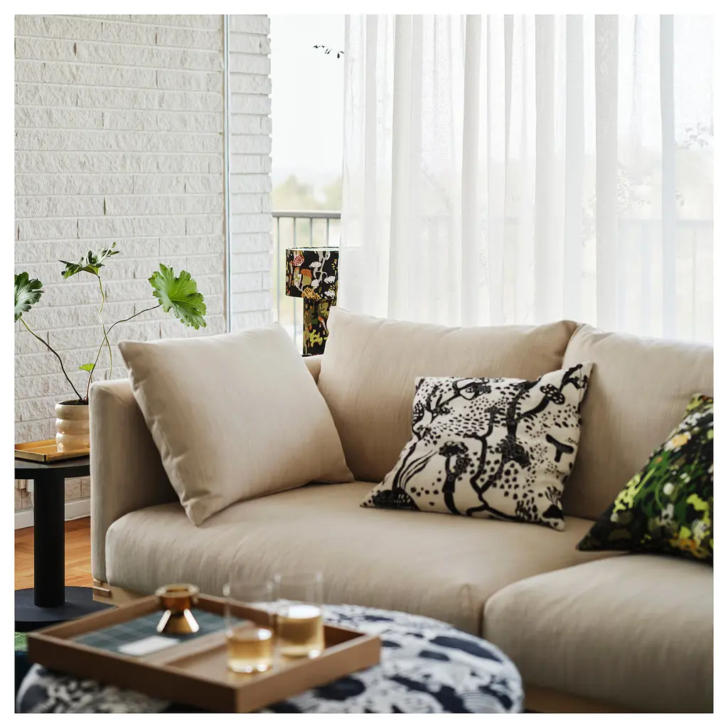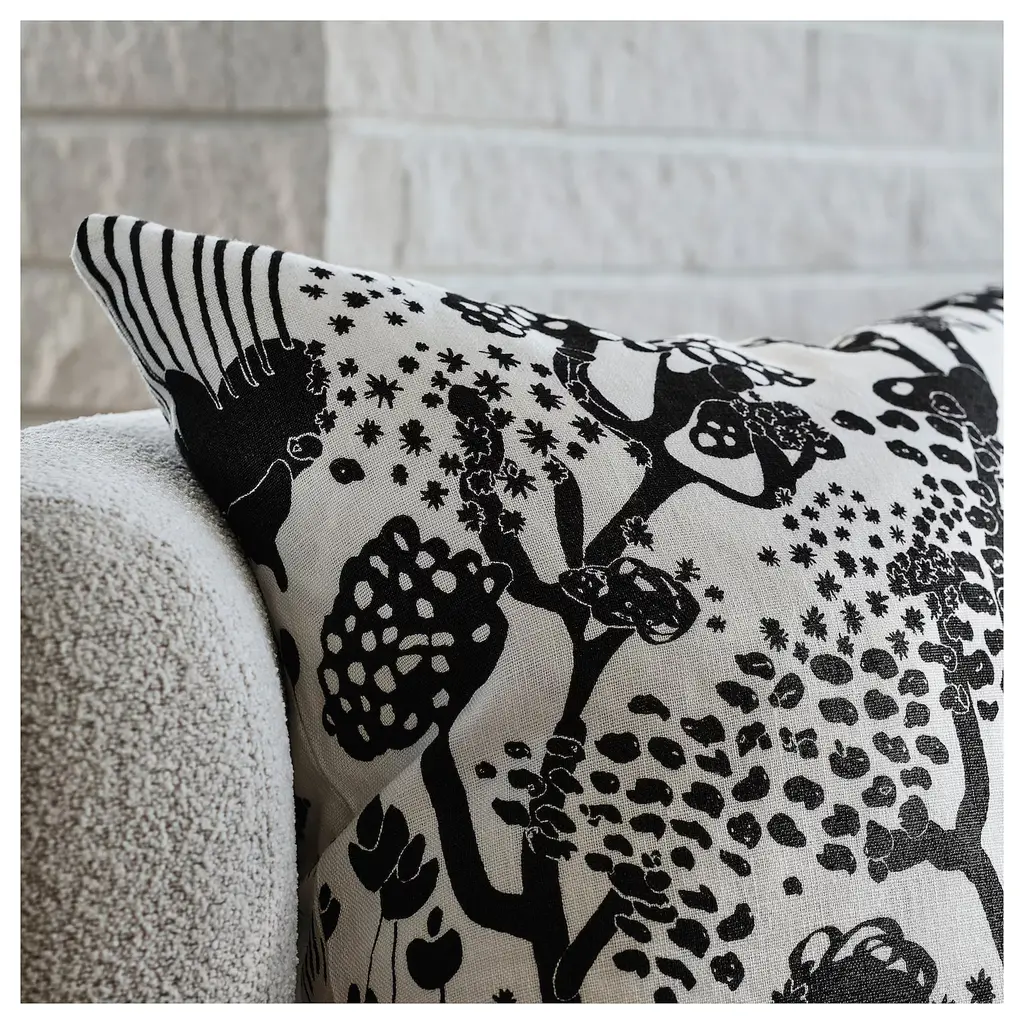 STOCKHOLM 2025 Cushion cover - white/black 20x20 ". The hidden zipper makes the cover easy to remove. Linen is a strong, durable material that washes well and has a natural protection against stains. Becomes softer and beautiful over time. Fits inner cushions 19⅝x19⅝".