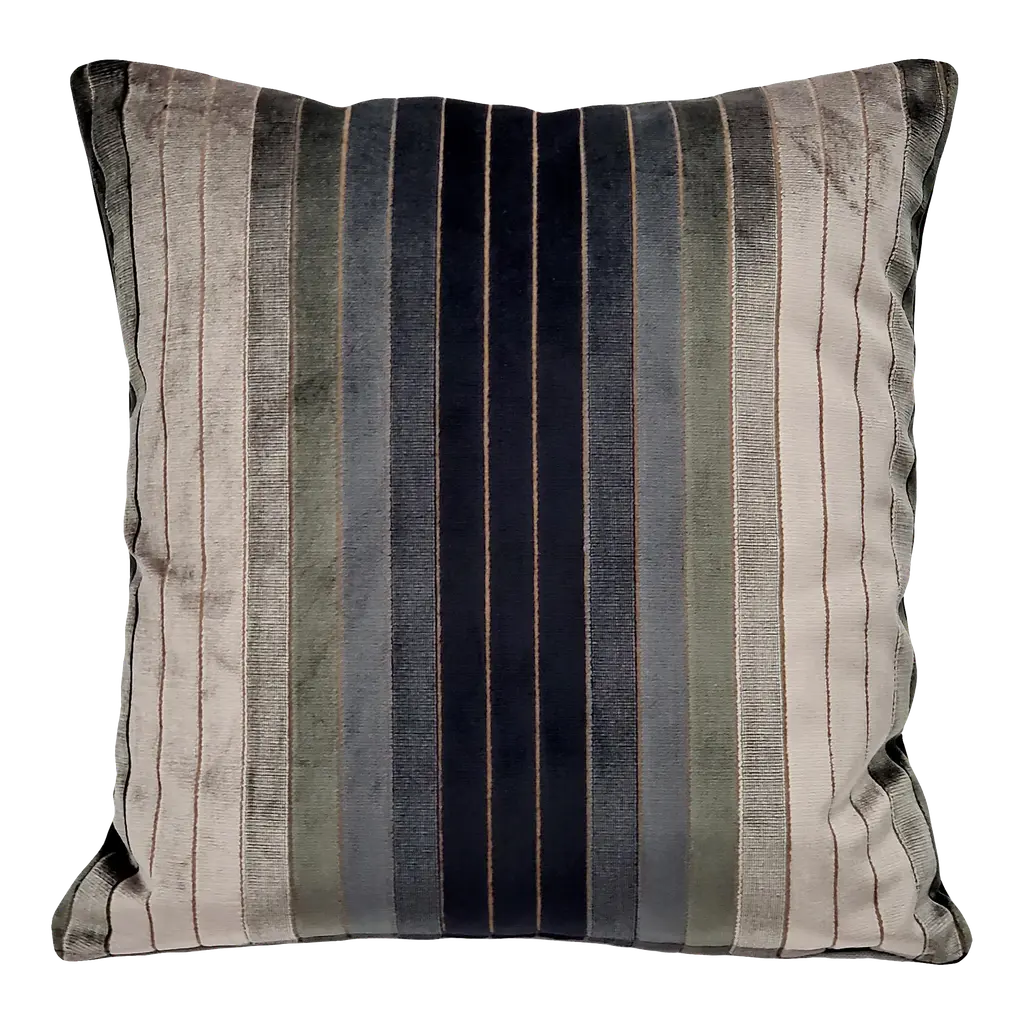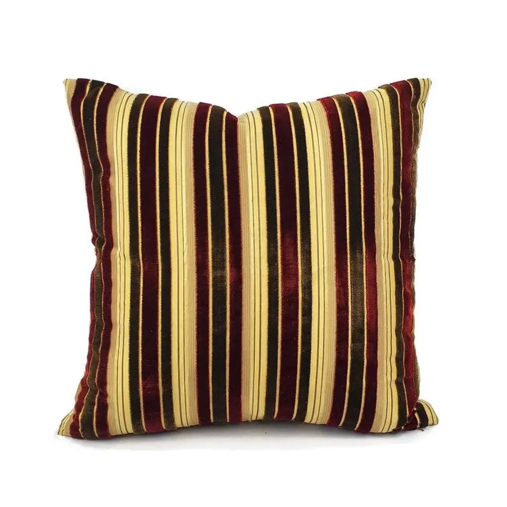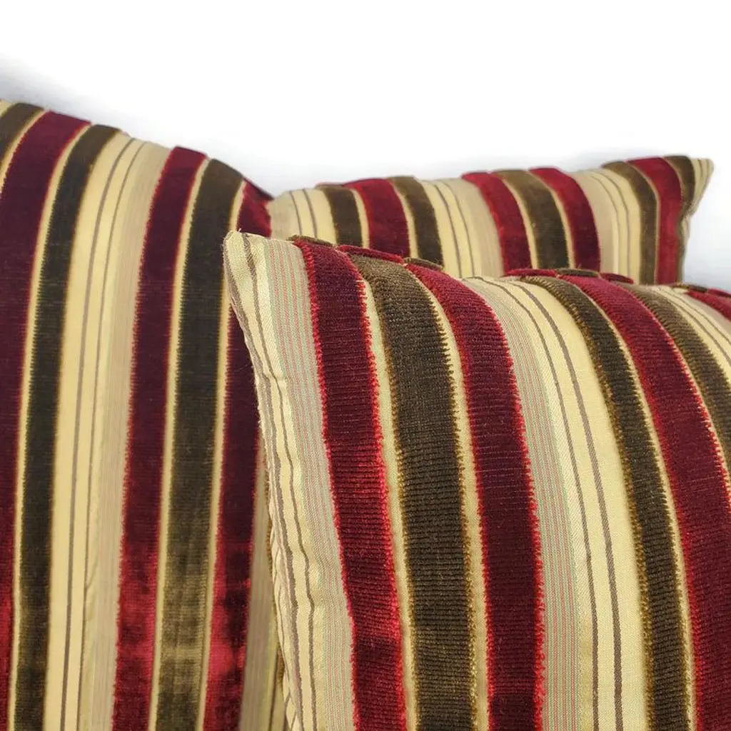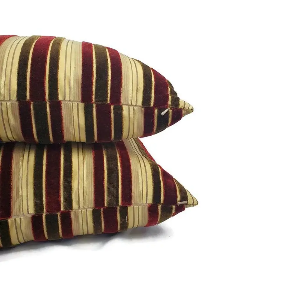 From Stroheim is Fitzory Stripe in Currant pillow cover. The fabric contents are Pile: 100% Silk, Base: 50% Viscose, 50% Bemberg®. A stunning pillow that will bring a luxurious feel into your designs. This pillow is made with an invisible zipper and surged edges. Front/Back: Fitzory Stripe in Currant Size: 20" x 20" Cleaning method: Dry Clean only Note: This listing is for ONE pillow cover only. Please select if you would like to include a feather insert. The recommended pillow insert size is 22" x 22" for this cover.