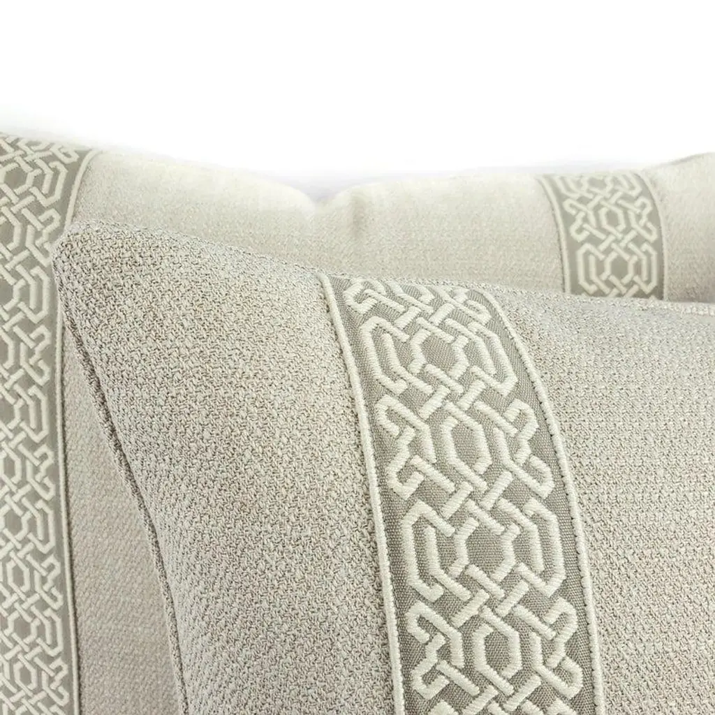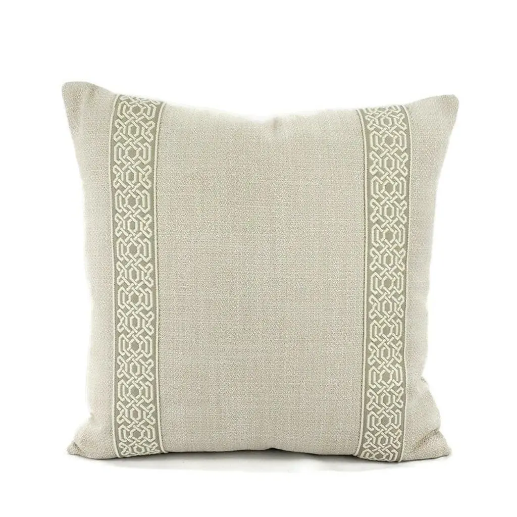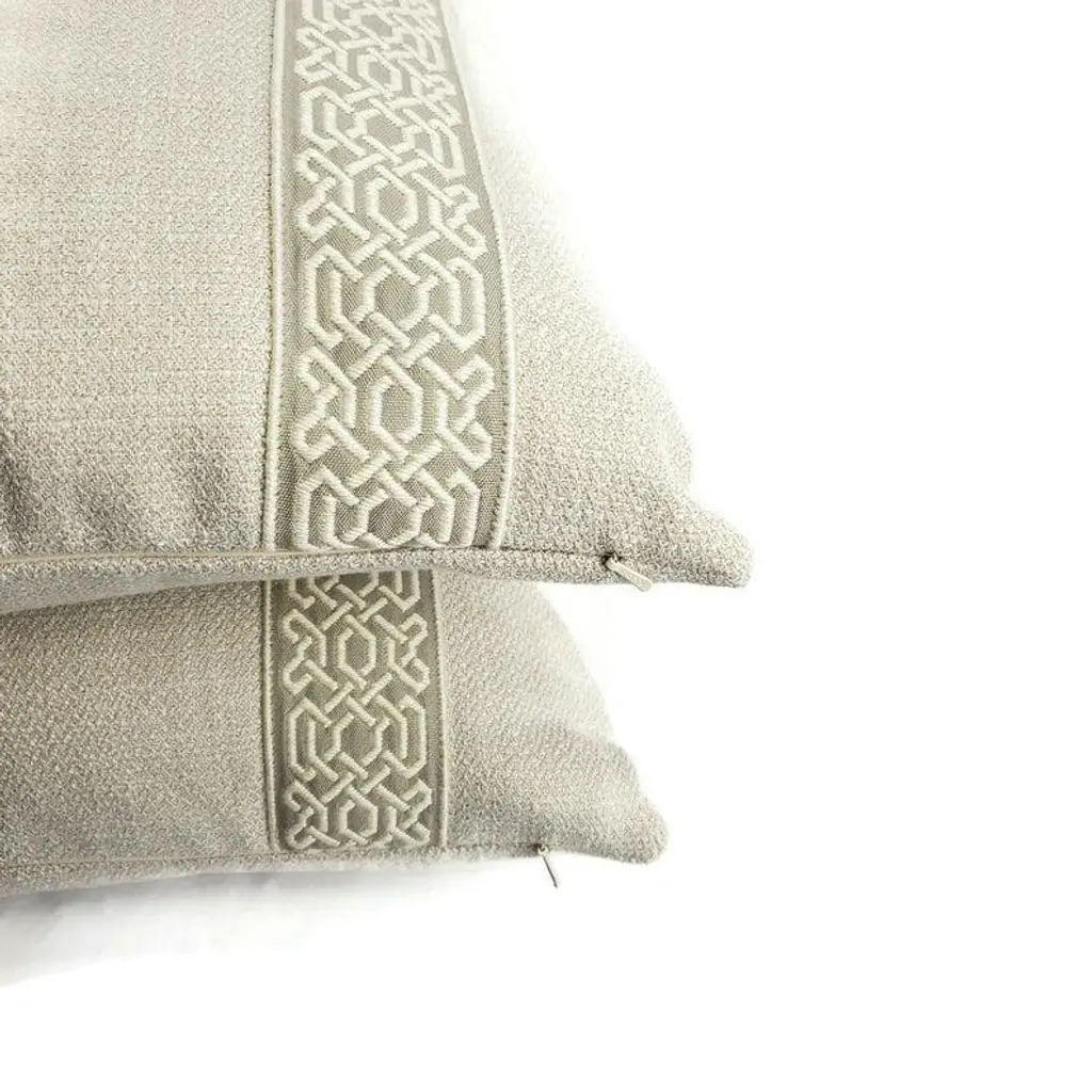 Sunbrella Woven Light Gray With Gray Fretwork Ribbon Pillow Cover