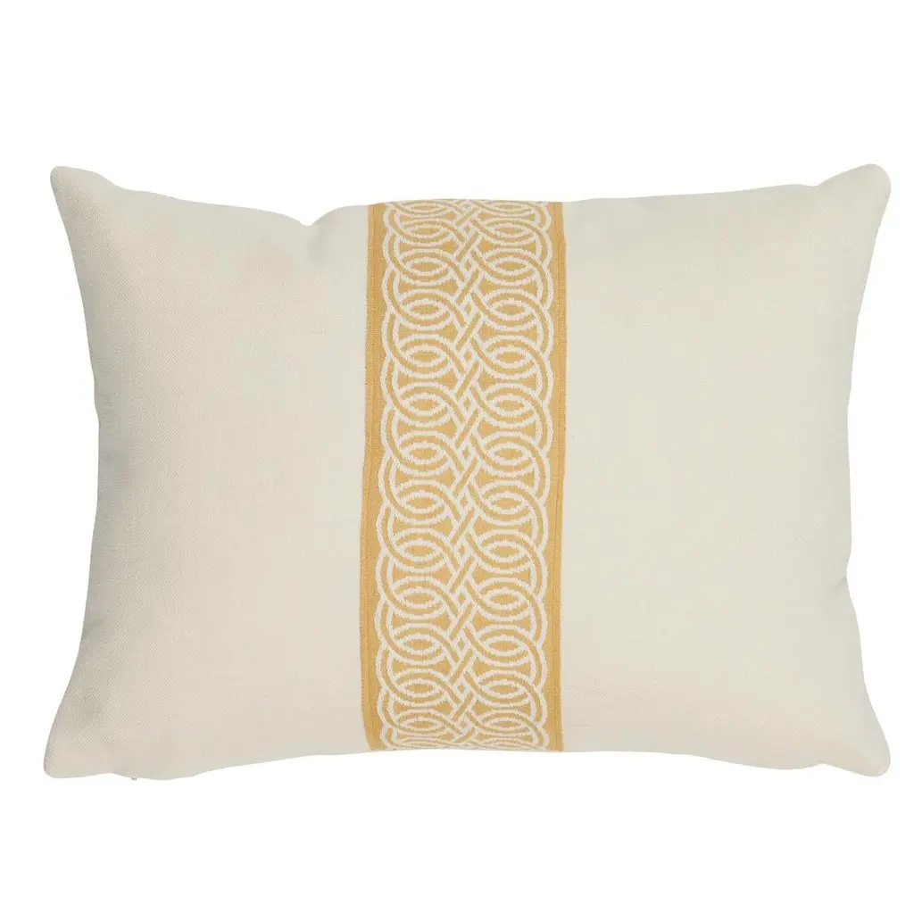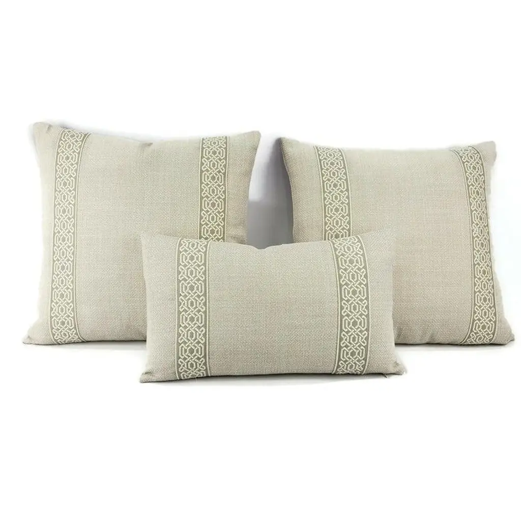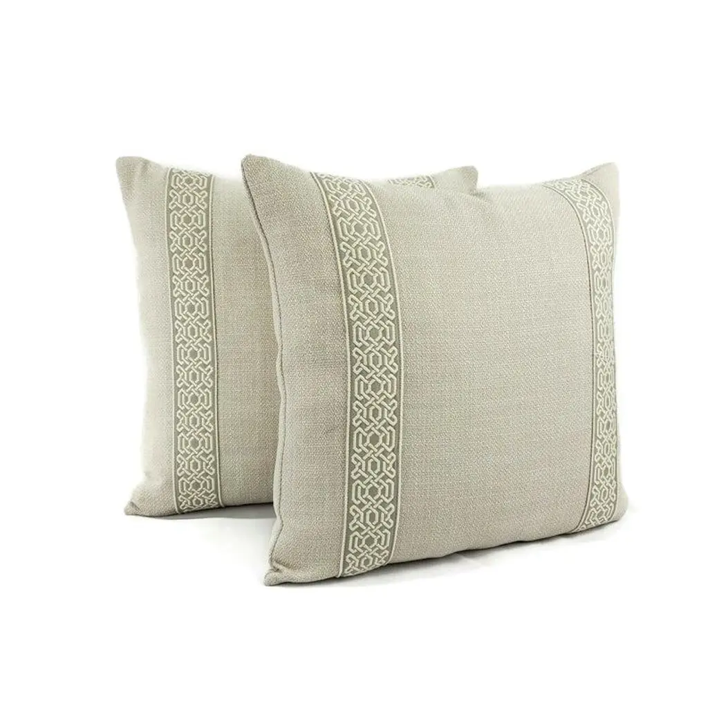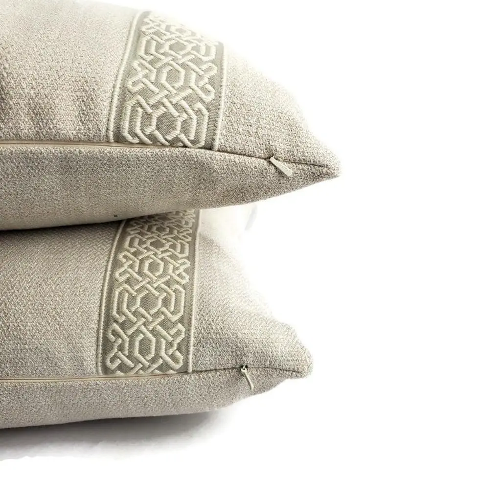 Sunbrella Woven Light Gray With Gray Fretwork Ribbon Pillow Cover