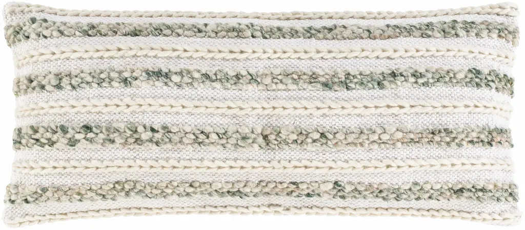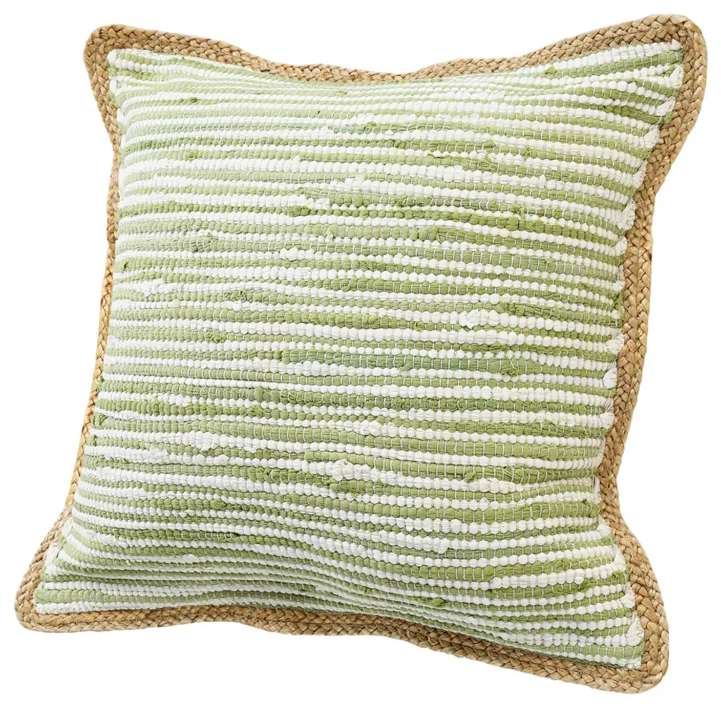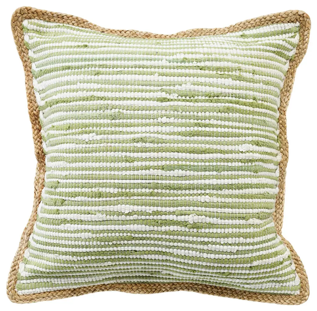 Sweet Pea Green And White Striped Jute Bordered Throw Pillow