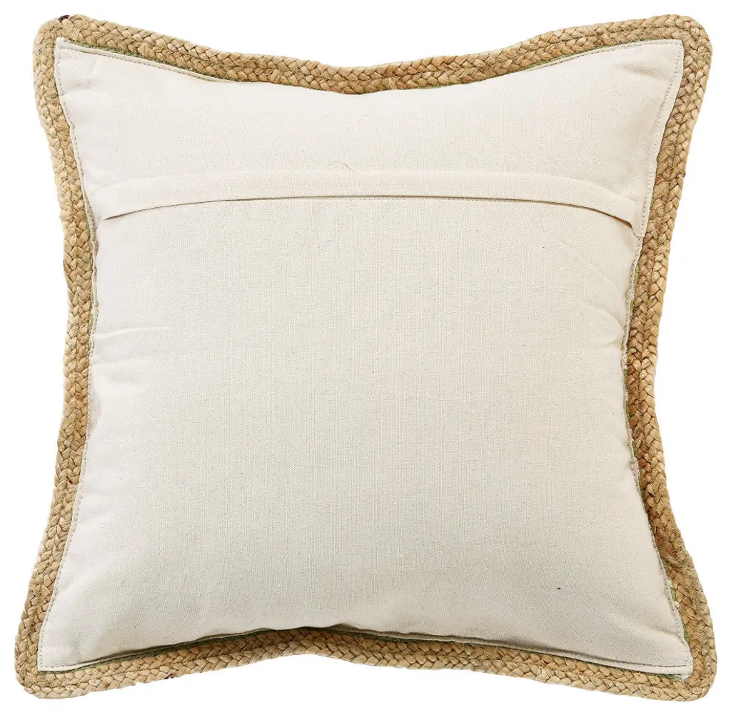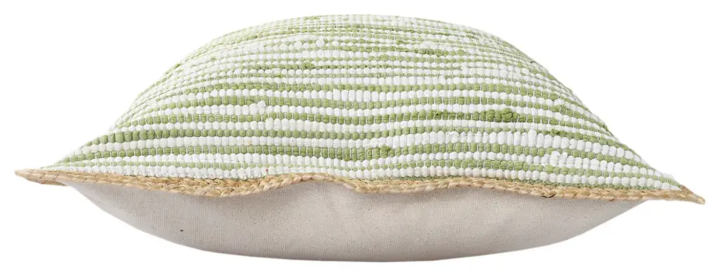 Designed to stand alone or layer with other accents, the Riley throw pillow brings a new dimension of style to your space. This versatile accent merges well with multiple home decor styles from boho to modern to coastal to country chic. The natural jute trimmed border and classic striped geometric cotton center combine to be a textured treasure with a pop of color. Crafted with care in India, each accent pillow is unique with its very own individuality. • TIMELESS TEXTURE: Enhance your home with every day contemporary style and a hint of rustic feel. This throw pillow features textured flanged edges of braided natural jute for a refined, natural look. • QUALITY CONSTRUCTION: Handmade in India with exceptional quality, this throw pillow features a woven cotton center with reinforced braided natural jute bordering. Reverse is solid with zipper. • VERSATILE STYLE: Soft sweet pea green and white tones allow this piece to span all seasons and various styles. It''s the perfect addition to any sofa, loveseat, couch, or bed in your living room, bedroom, nursery, or guest room. • PACKAGE INCLUDES: (1) 20" x 20" 85% Cotton and 15% Jute Decorative Throw Pillow Cover with Backside Zipper. Hand-Stuffed with Polyfil/Polyester Insert. • PLEASE NOTE: The digital images may vary due to differences in computer monitors, some colors may vary slightly. • CLEANING AND CARE: Spot Clean. Do not pull loose fiber, clip and remove loose ends with scissors. Zipper Closure for Easy Insert Removal.