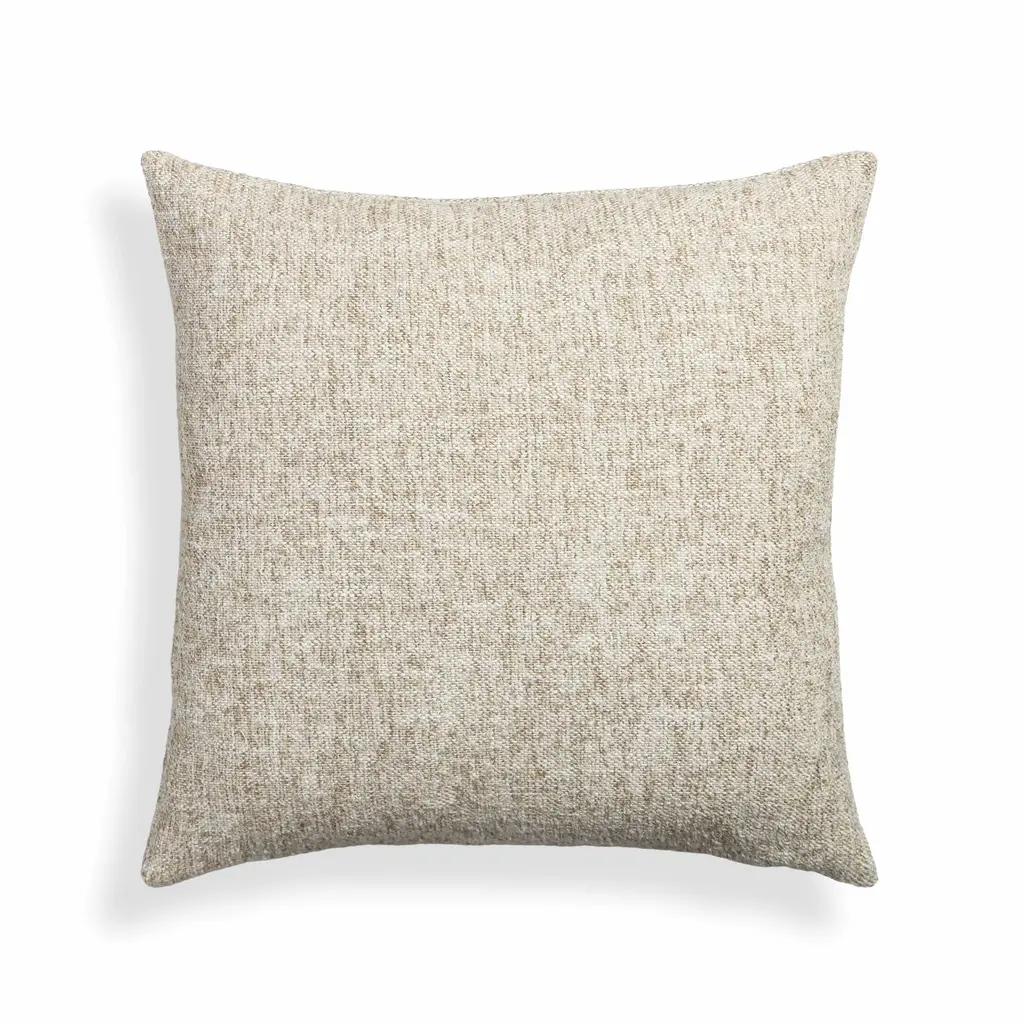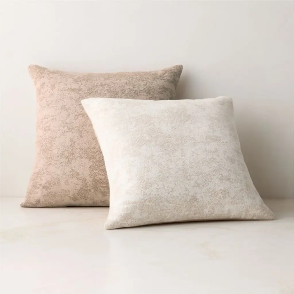 Crafted from pure linen, throw pillow cover layers an abstract, watercolor-like pattern with intricate embroidered detailing on top. The light mauve and warm neutral design feels organic and fluid, while the subtle zig-zag stitching adds depth and dimension. Soft yet structured, it's a refined accent with a quiet, artful presence. CB2 exclusive.