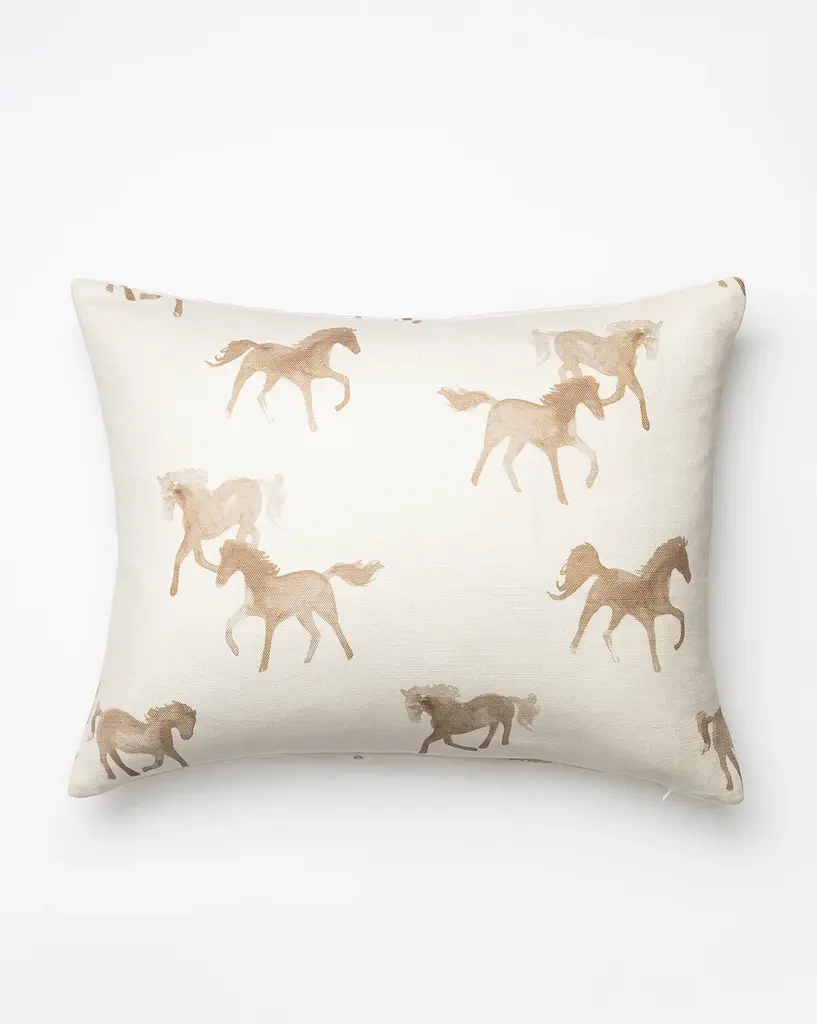 Unbridled beauty and runaway style are evident in this decorative pillow that is exquisitely hand embroidered. Part of our collaboration with interior designer Kit Kemp, the design celebrates one of Kit’s favorite places, England’s New Forest, where wild horses roam free and wild.