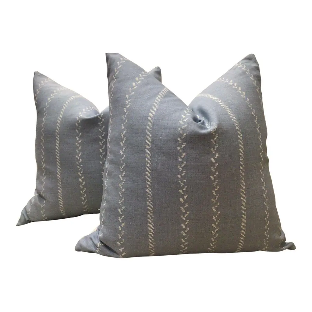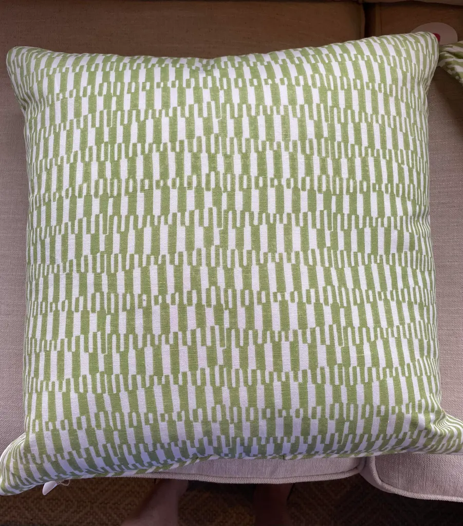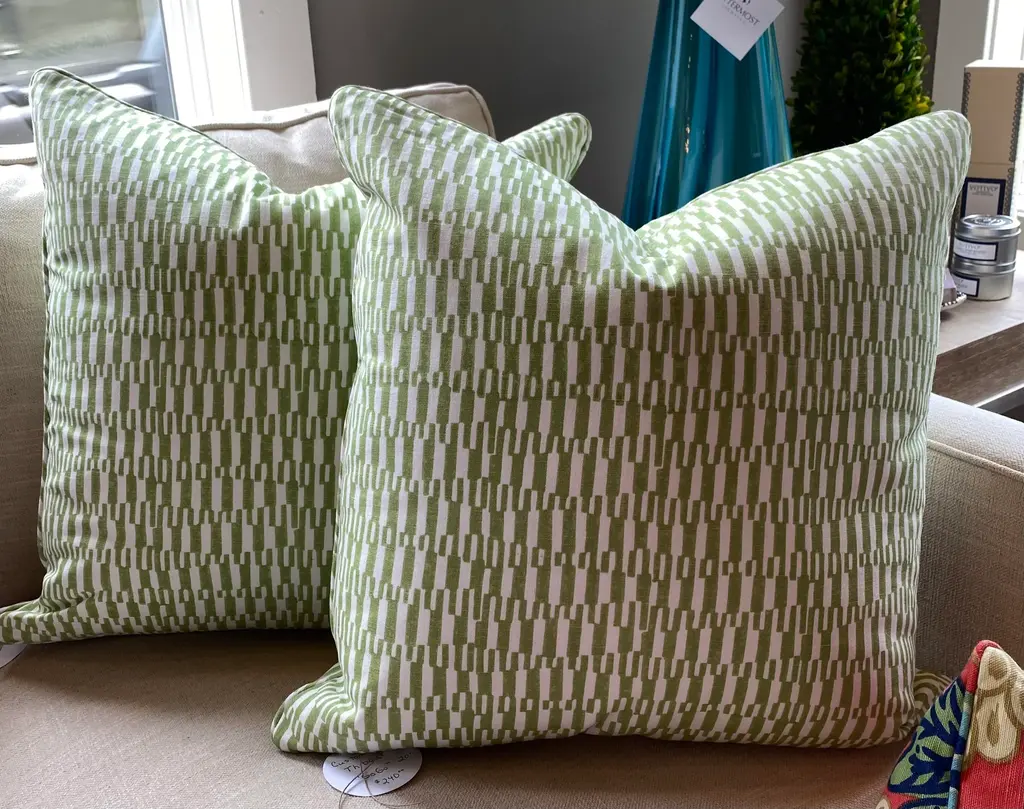 Custom 20"x20" Lined Pillow Cover in Thibaut "Solis" Fabric from the Tropics Collection. Color: Emerald Green 52% Cotton 48% Linen Dry Clean Only 18,000 Martindale Priced per item. 2 available. Construction: Solis fabric on both sides with pattern matching both front and back. Self welt. Cover is lined with cotton fabric, serged, and invisible zipper is used on the bottom. Pillow insert is not included. Suggested insert size 21"x21" or 22"x22" down/feather for a professional result.