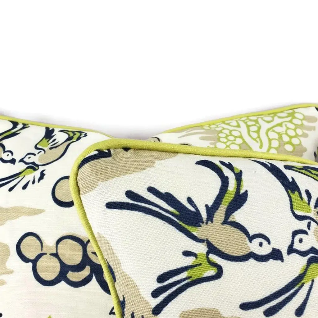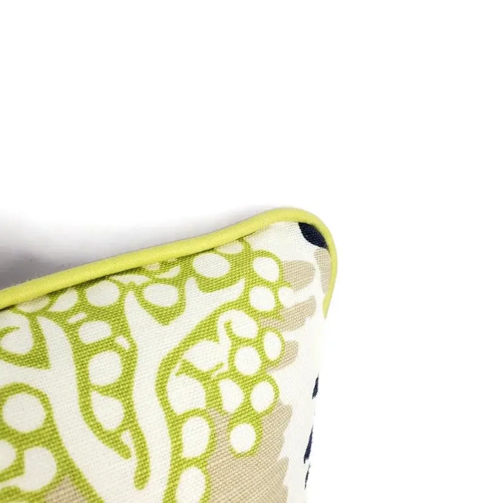 Thibaut Luzon In Navy On Beige With Lime Welt Pillow Cover