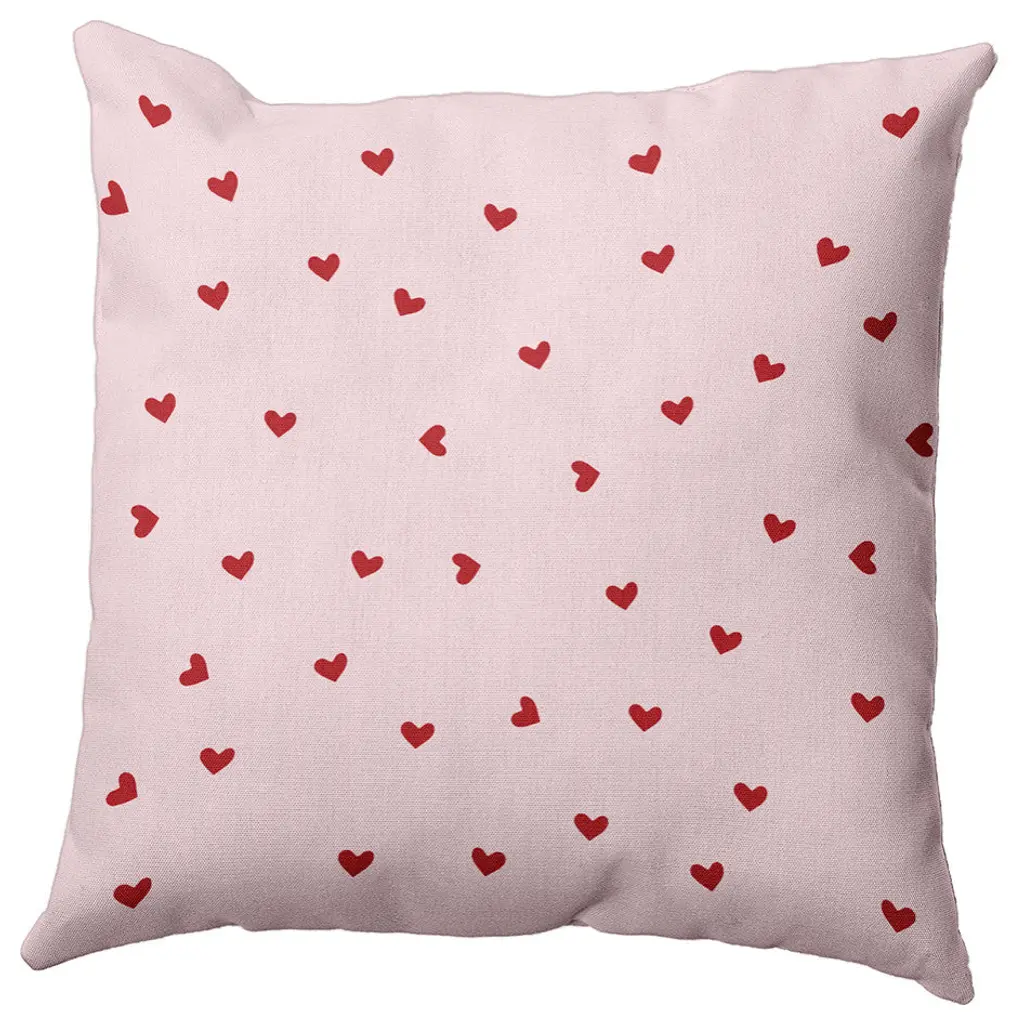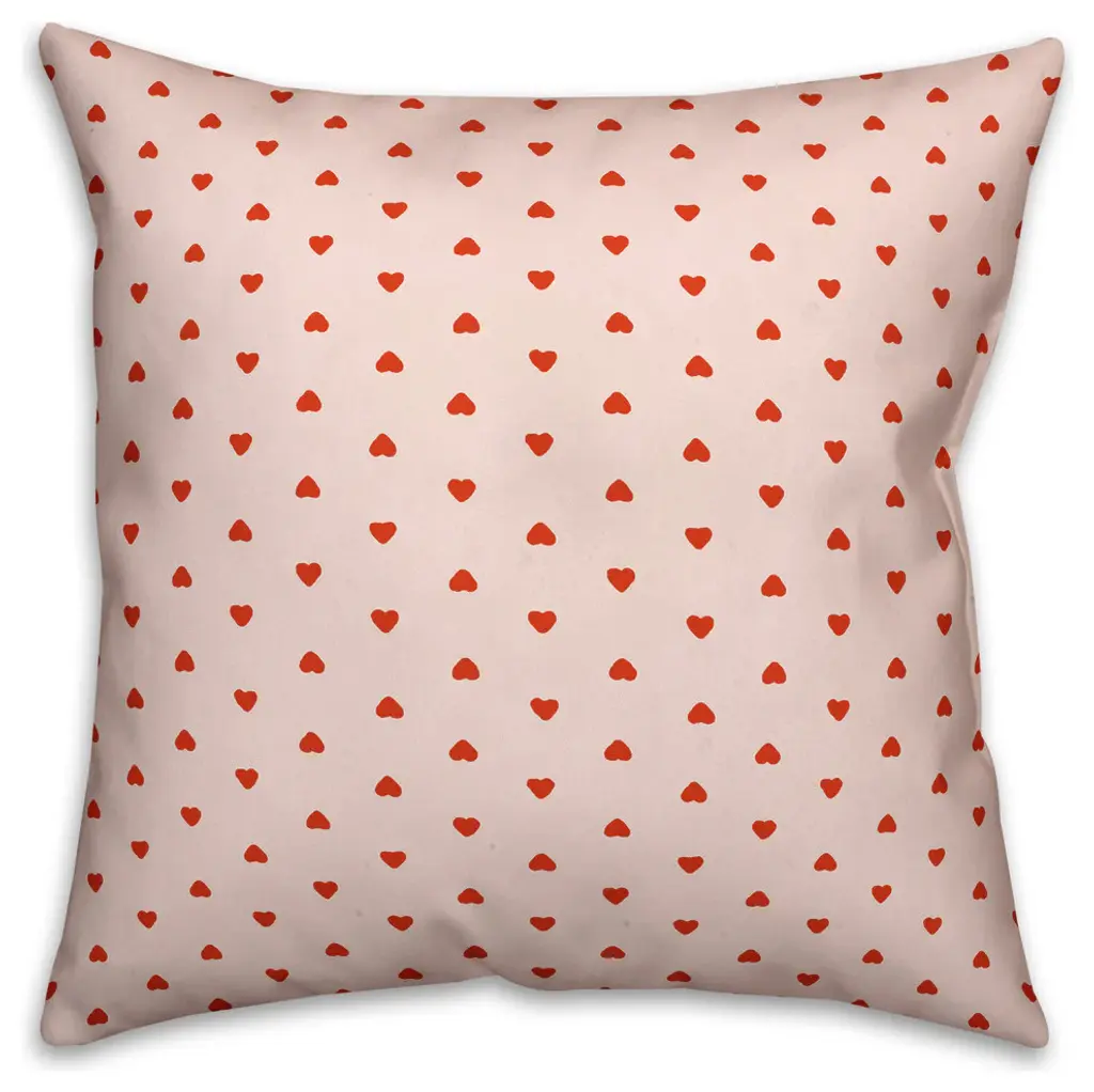 Tiny Hearts Pattern, Red And Pink Throw Pillow Cover, 18"x18"