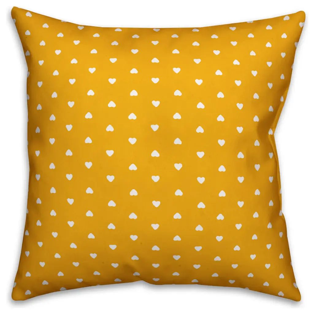 Tiny Hearts Pattern, Yellow Throw Pillow Cover, 20"x20"