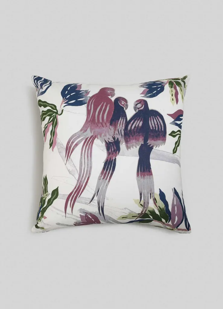 Tree Full of Parrots Multicolour Cushion Cover 24"x24", Viya By Vikram GoyalA tree full of parrots is a sign of success in aspirations and future endeavours. According to the 17th century Indian manuscript, “The Book of Dreams”, encountering this avian spectacle in dreams is deemed profoundly fortunate, made more so living amongst the trees of life. Their raucous, throaty squeaks travel far, symbolising blessings and good fortune - qualities we manifested in every hand-screen and block printed detail of this collection of bedding.Cushion cover in cotton. Handmade in India.Product DetailsMaterial: CottonSize: 24"W x 24"L 61 W x 61 L cmWeight: 0.21 kg 0.462 lbsNumber of Pieces: 1 Cushion Cover without fillerSKU: VBC256This product has been handcrafted by local artisans. As such, slight variations are a testament to the unique character of a piece made by hand.Country of Origin: India