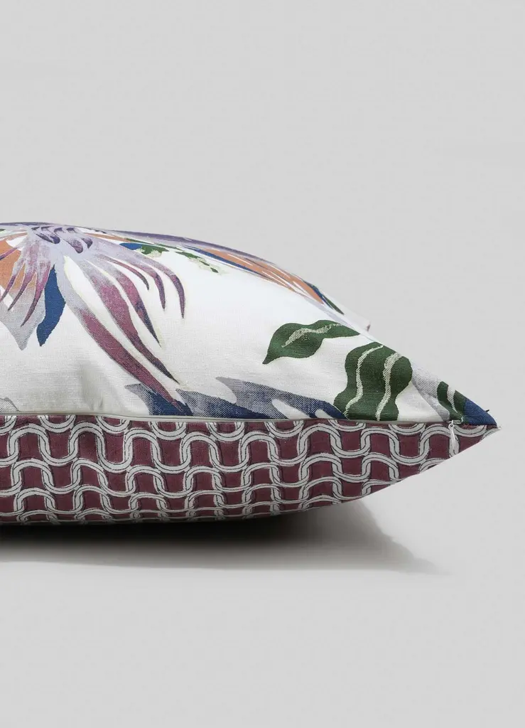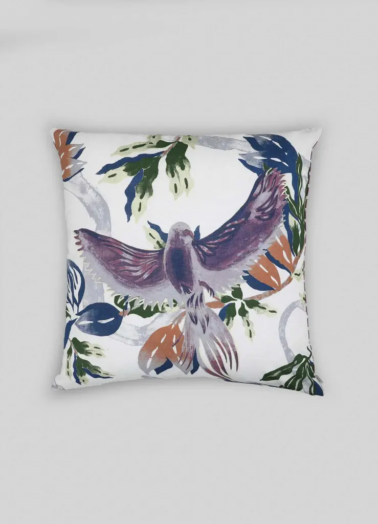 Tree Full of Parrots Plum Cushion Cover 24"x24", Viya By Vikram GoyalA tree full of parrots is a sign of success in aspirations and future endeavours. According to the 17th century Indian manuscript, “The Book of Dreams”, encountering this avian spectacle in dreams is deemed profoundly fortunate, made more so living amongst the trees of life. Their raucous, throaty squeaks travel far, symbolising blessings and good fortune - qualities we manifested in every hand-screen and block printed detail of this collection of bedding.Cushion cover in cotton. Handmade in India.Product DetailsMaterial: CottonSize: 24"W x 24"L 61 W x 61 L cmWeight: 0.21 kg 0.462 lbsNumber of Pieces: 1 Cushion Cover without fillerSKU: VBC252This product has been handcrafted by local artisans. As such, slight variations are a testament to the unique character of a piece made by hand.Country of Origin: India