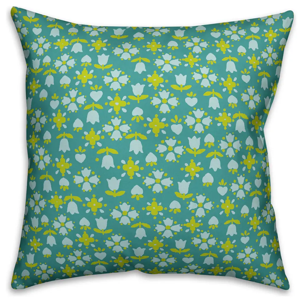 Tulip Pattern, Blue Throw Pillow Cover, 20"x20"