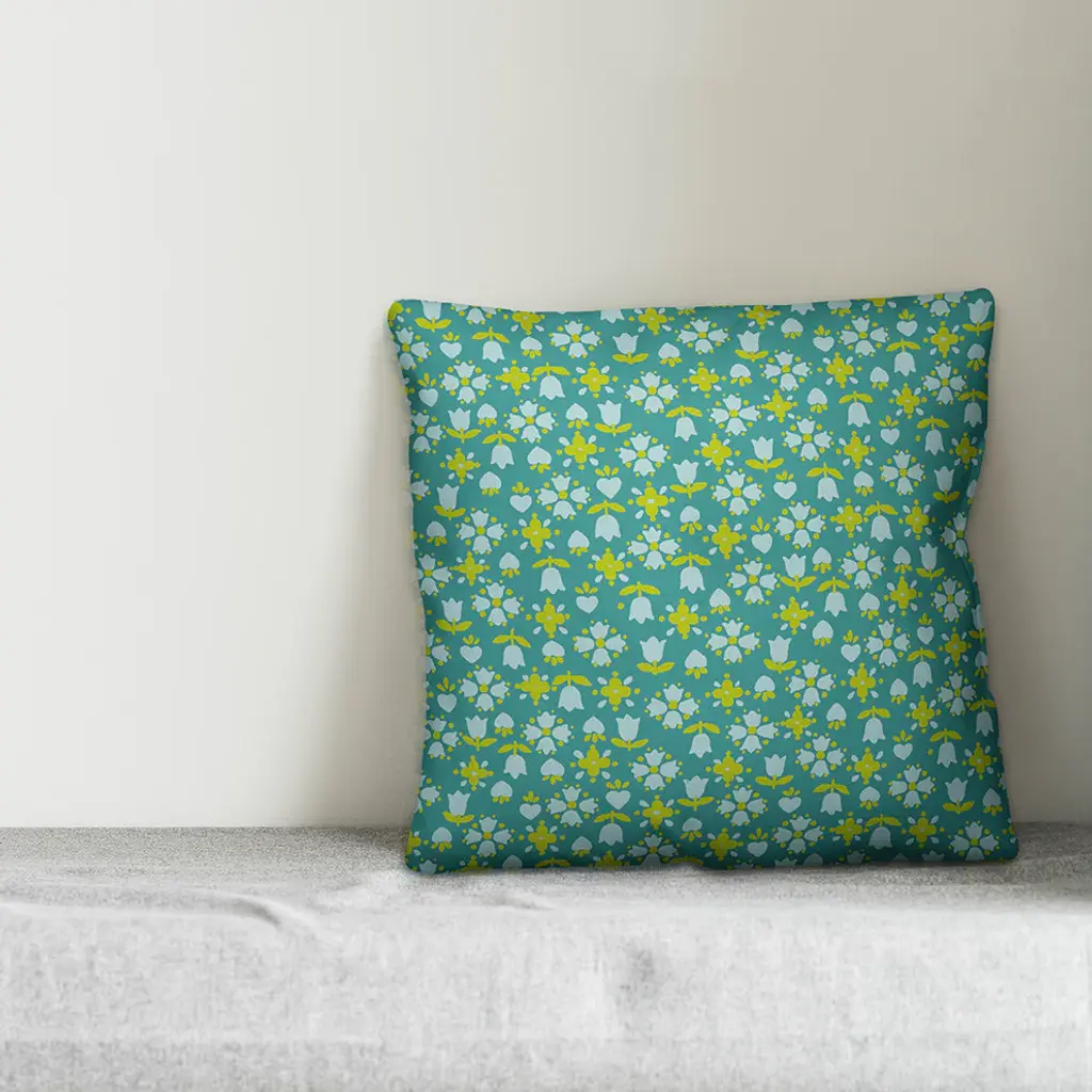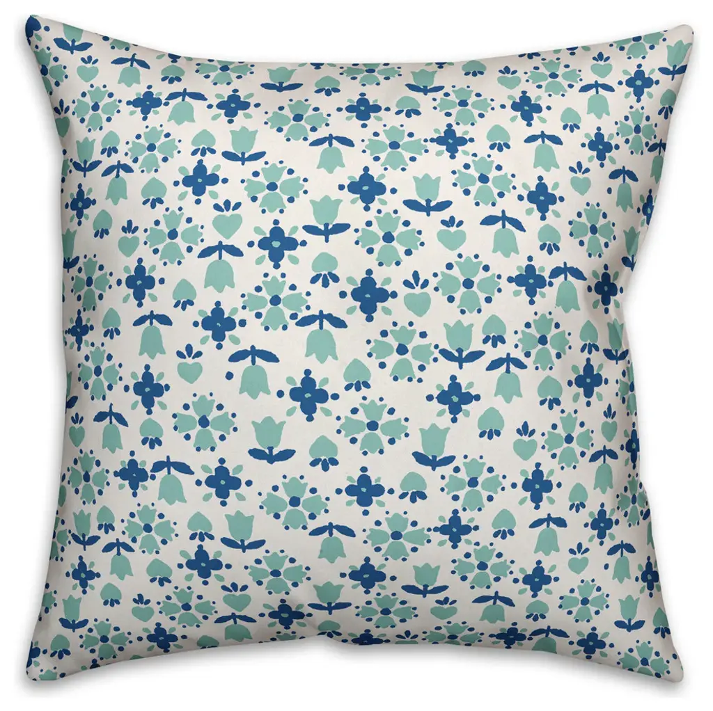 Tulip Pattern, Dark Blue Throw Pillow Cover, 20"x20"