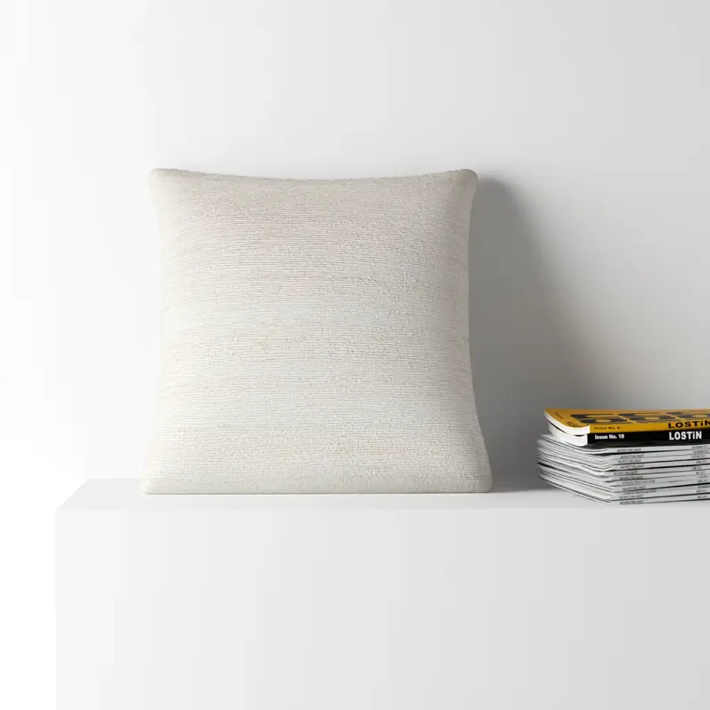 Soft form + texture. This square throw pillow cover is woven from a linen blend and finished with a clean knife edge. Choose to include the insert of your choice – based on availability – or easily install your own with the convenient zipper closure. Add to your reading nook or favorite spot on the sofa.