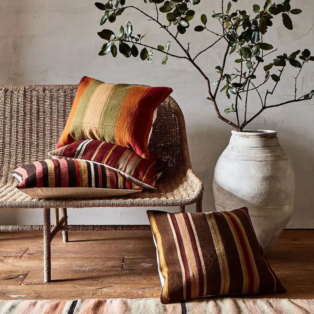 Hand-feel. Naturally knubby. In vintage-style stripes, these textured pillows are woven from handspun wool for a warm surface that’s perfectly lived-in.