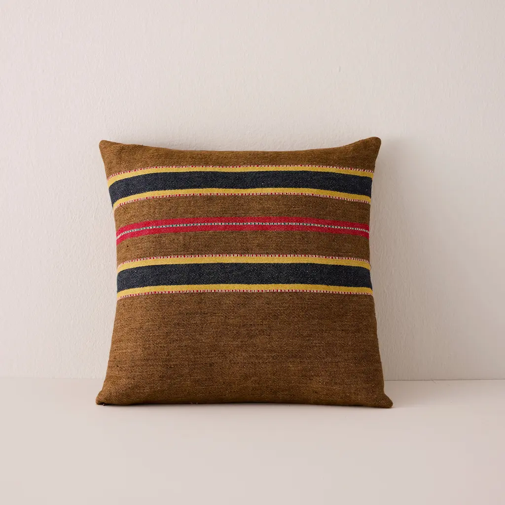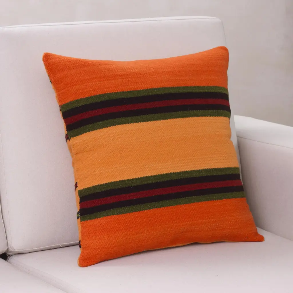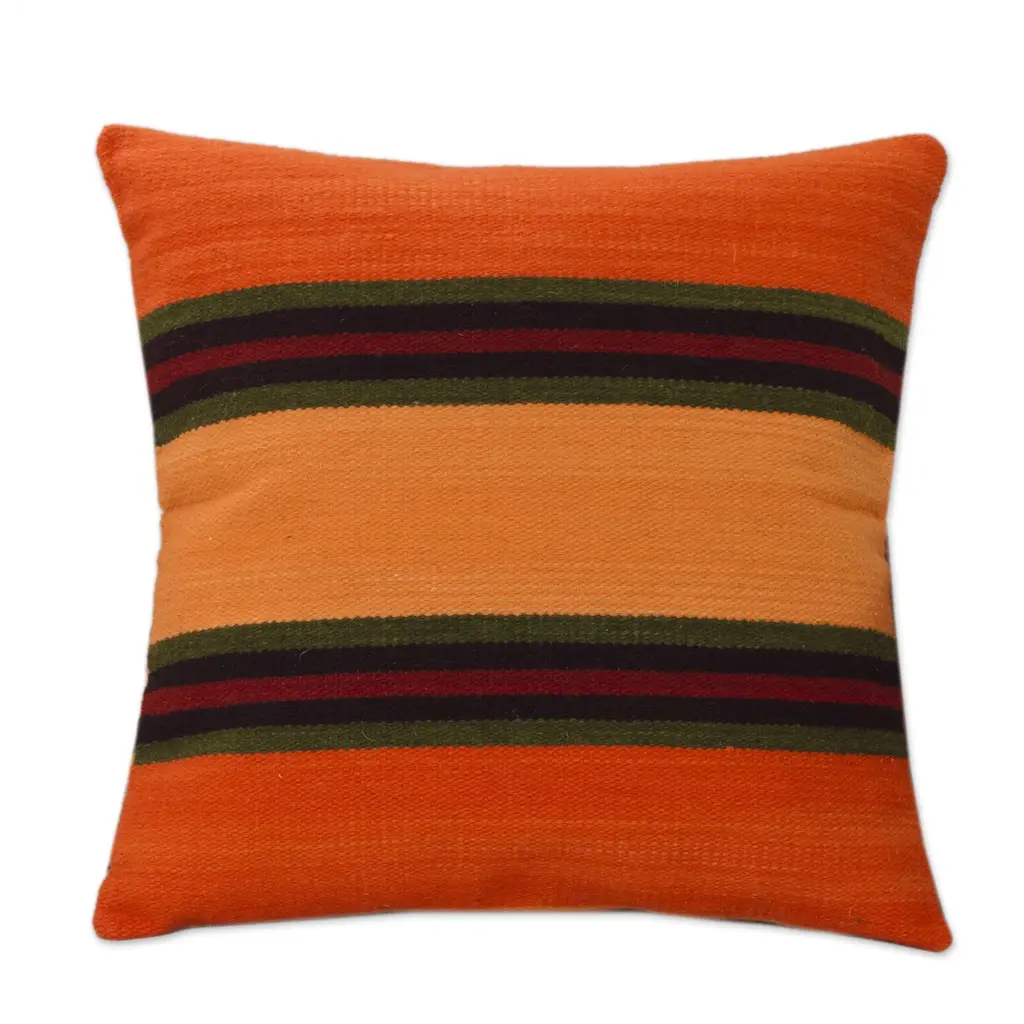 Wool Cushion Cover Orange Stripe 18 In Handmade Peru- Three Worlds
