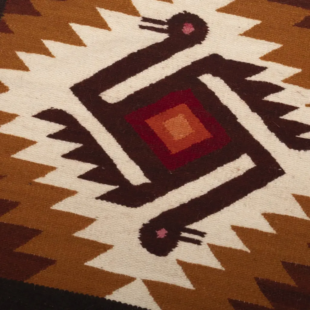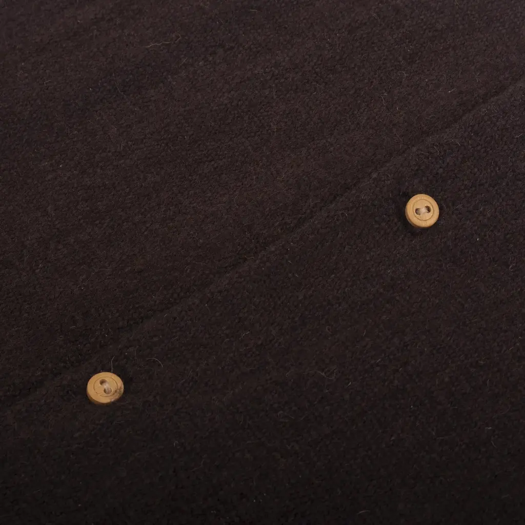 These two-headed birds are part of the pre-Hispanic iconography of highland Peru ane exemplify the ancient people's concept of duality. They precise motifs grace two wool cushion covers, handwoven by Zosimo Laura. The reverse side is solid espresso brown with a button opening for inserting the cushions.