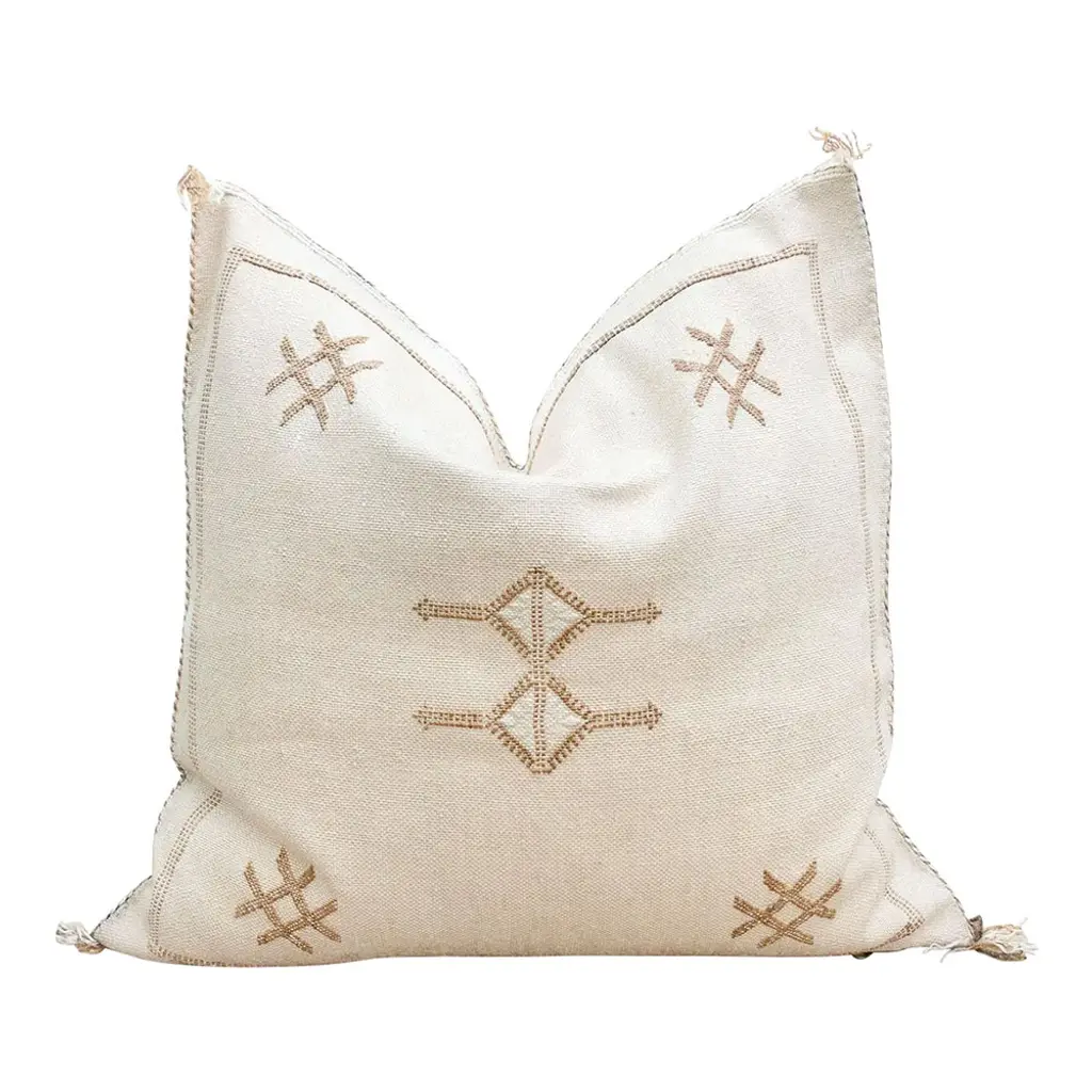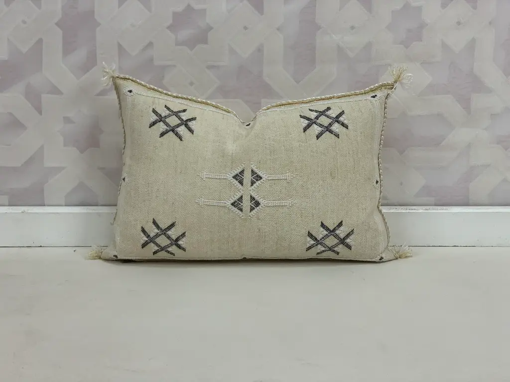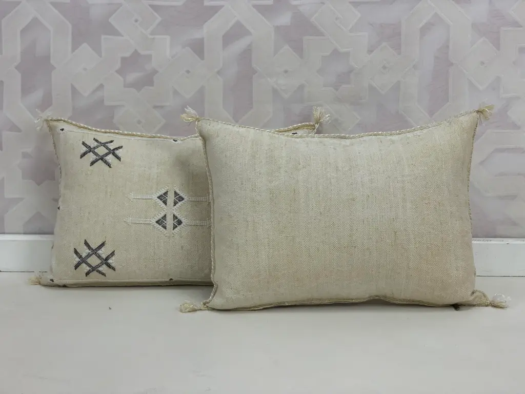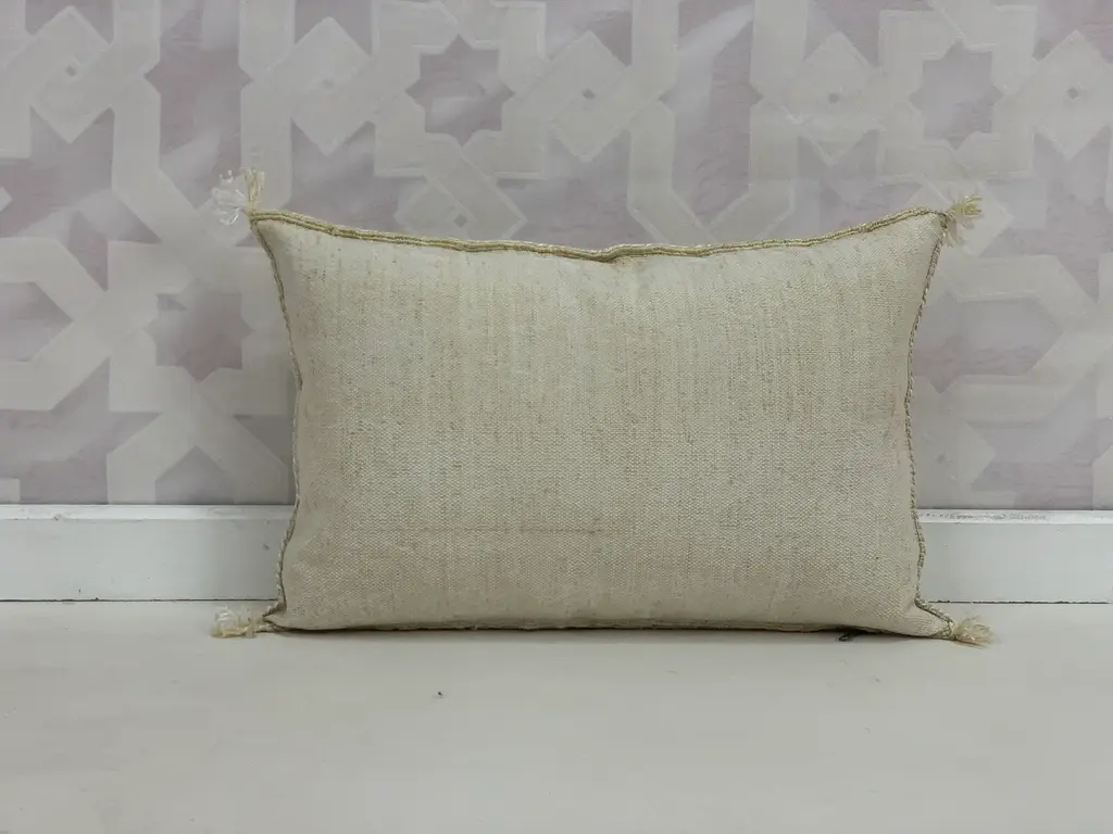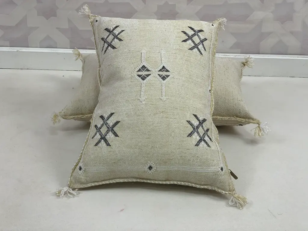 Decorative pillow cover Note Please note that these pillows are made by hand, so they may differ slightly from each other in decoration, shades or color. As each pillow is hand woven and hand dyed, there will be natural slight variations in size and braided color from the image shown. Bringing a little sunshine ☀️ your way today! Local villagers harvest the leaves of the Sabra Cactus plant for the filaments within, and loom the textural canvas into patterns of ancient motifs! Great story! This cactus silk pillow was handwoven from silk from the sabra cactus plant. Each pillow is unique with their berber symbols and are one of a kind. ——— ITEM DETAILS ——— Place of Origin: Morocco State: Excellent / New Color: yellow - You will receive the same pillow color as shown in the product description! Origin : Moroccan Atlas Mountains Berber tribe Size: Approx. 13" x 20" (33 x 50 cm) (+/- 2 inch due to the handmade nature of the item). Price is not including the pillow inside Features: Moroccan cactus pillow handcrafted by local Berber artisans This patterned pillow is a unique piece of art. - 100% handmade and handwoven. - This pillow is Moroccan made, handcrafted from Aloe Vera silk, commonly known as vegetable silk, Sabra silk. - No chemicals were used in the weaving process. - Zipper on one side. - Mixed inscriptions at the front. - Please note: Handmade items are not factory made. These pillows may have minor imperfections this adds to their vintage or handmade charm. - This is a 100% handmade sabra pillow. Washing Instructions: Dry Clean Only, Avoid Contact With Water. Product advantages: When you buy a natural, handcrafted product, you will be contributing to the preservation of the environment, How to stuff: Product is shipped unstuffed. Can be stuffed using an economical way by using old clothing or bedding material such as comforters and blankets. For a firmer support, a foam insert can be used. We use TWO memory foam pillows to create a firm top and a comforter. Our products are handcrafted by artisans using traditional techniques. while each piece is created by an expert in their craft, handmade and vintage items are perfectly imperfect. there may be minor imperfections such as fading colors, loose threads, or wear. we believe these characteristics are all part of the story behind the product and the artisan that crafted it, making it truly unique. we hope you do too! ✈️✈️✈️ Shipping ✈️✈️✈️ FREE shipping in the WHOLE WORLD. Buyers are responsible for any Customs or Duty fees incurred. Shipping methods : DHL Express “Door to Door” for your convenience 2-5 Business days after handling time anywhere in the WHOLE WORLD, our shipments are secure and insured for lost; a tracking number will be provided to track your package. Please ask ALL questions before buying! ❓❓❓ ARE FLOOR CUSHIONS CLEANED? Yes, all floor cushions are carefully cleaned before they are shipped off to their new owners. ⭐️⭐️Note ⭐️⭐️ Note: We have done our best to capture precise colors, but know that the colors may vary based on the display screen and lighting (natural vs low lighting). If you would like any inquiries, please do not hesitate. I can send more pictures to you if you want to have another better idea of the look,