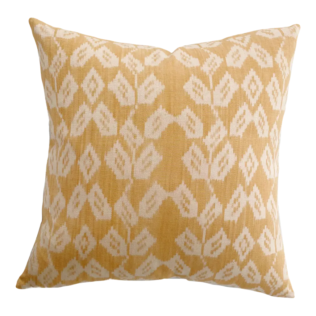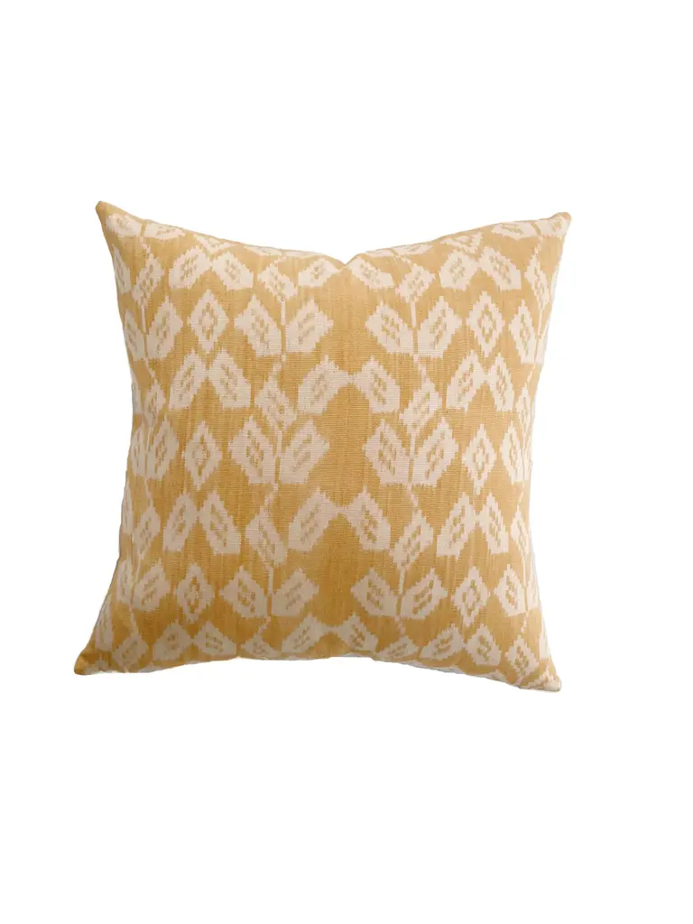 Fabric Details: Yellow Handwoven Indonesian Ikat Fabric with Natural Linen Backing Size: approximately 19” x 19” (fits a 20” x 20” pillow insert) Invisible Zipper and Professionally Finished Seams Professional Cleaning or Spot Cleaning Recommended Handmade in Texas Notes: Pillow insert is NOT included. Listing is for ONE pillow cover. Any imperfections or flaws in the pattern of this pillow are not imperfections, just the result of a handmade item that adds character and beauty to the textile.