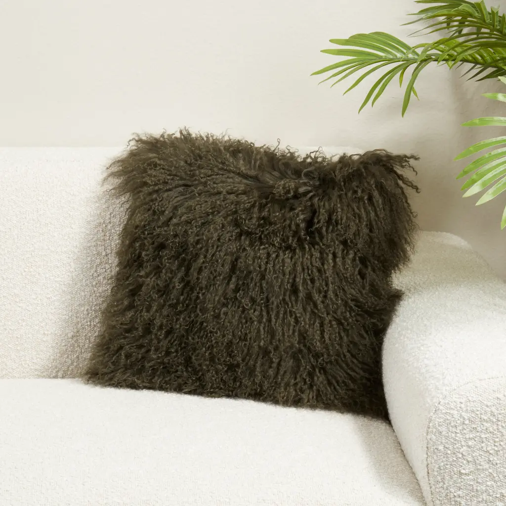100% Wool Mongolian Lamb Fur Poly Filled Throw Pillow - 12"x20"