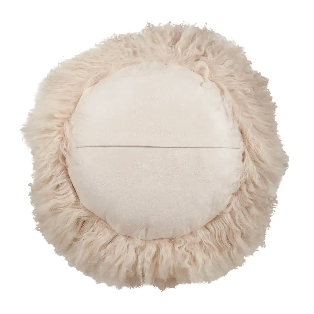 100% Wool Mongolian Lamb Fur Round Throw Pillow - Rose / 13"