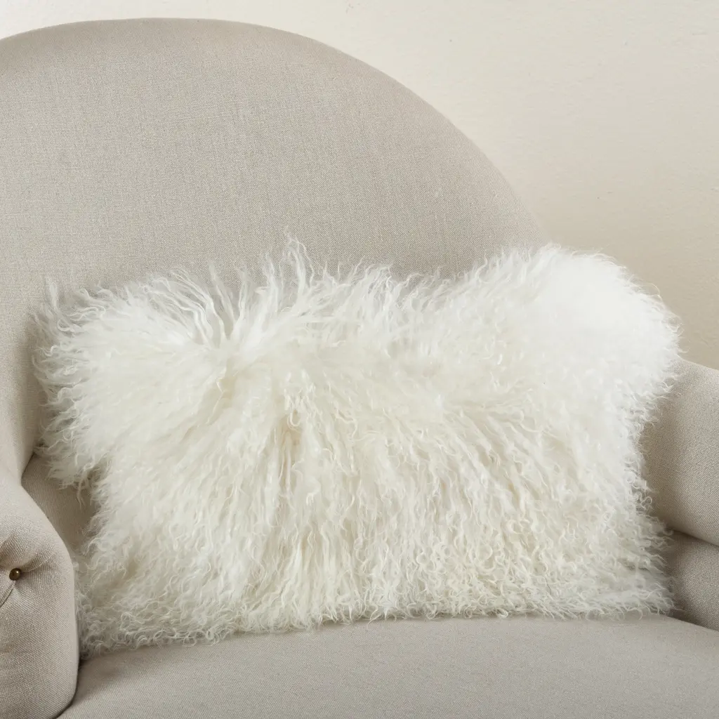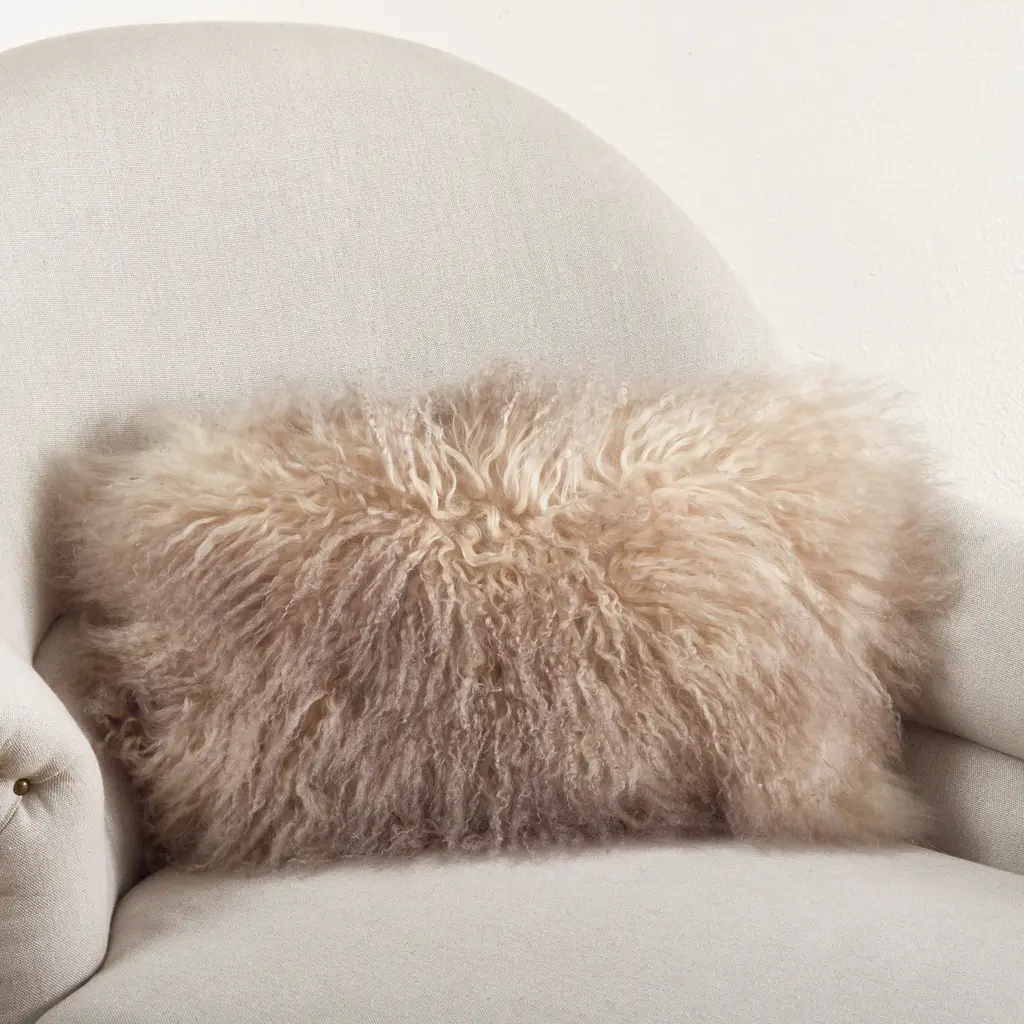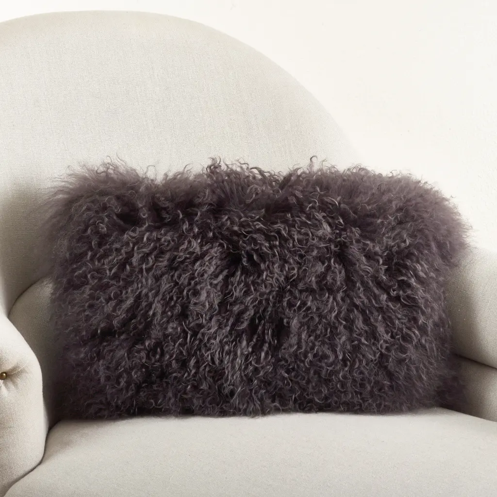 What do you get when you combine cutesy, funky and fashionable? You get this adorable throw pillow. Made from 100% wool, this oblong-shaped, poly-filled, Mongolian lamb fur pillow is the life of the party. It stops you in your tracks and commands all attention.
