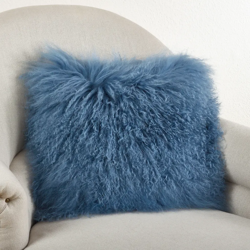 100% Wool Mongolian Lamb Fur Square Throw Pillow - Eggplant / 16"x16"
