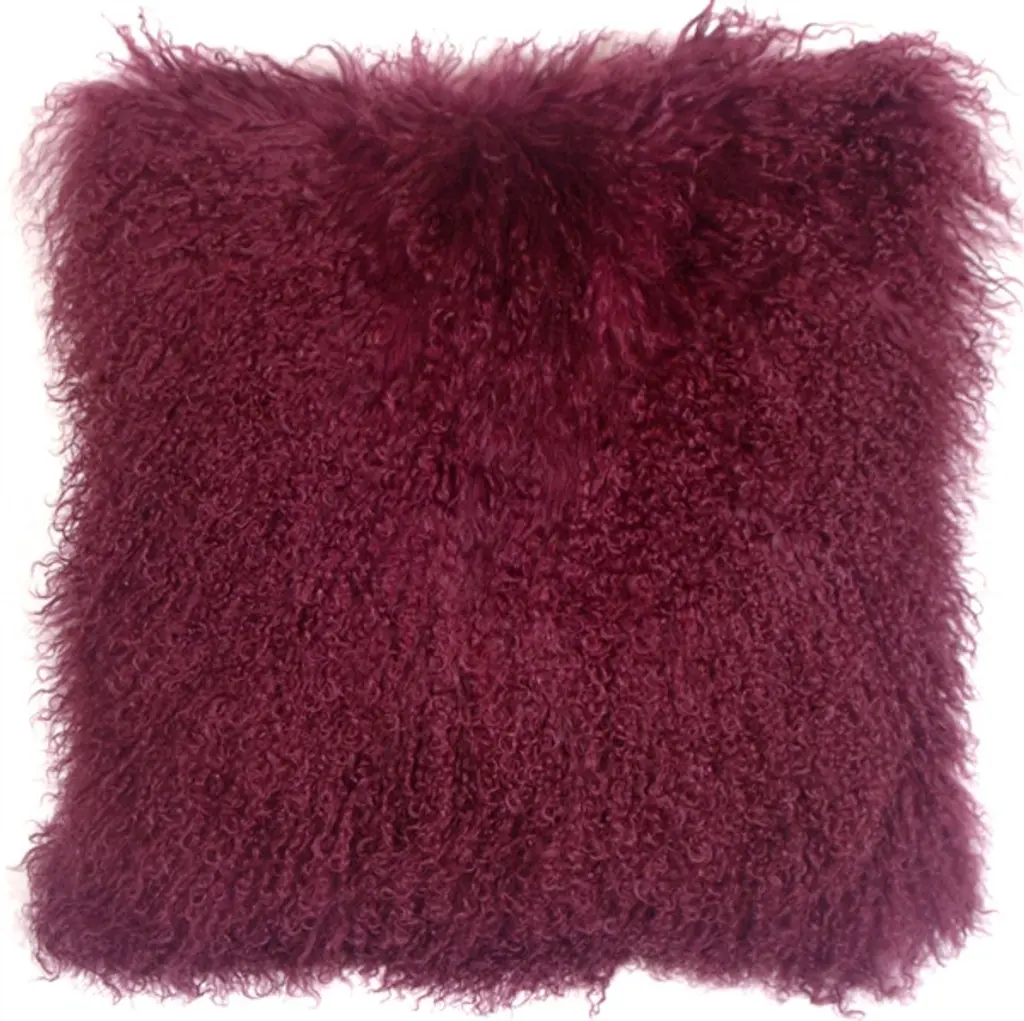 100% Wool Mongolian Lamb Fur Square Throw Pillow - Red / 16"x16"