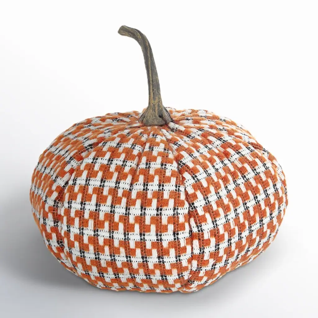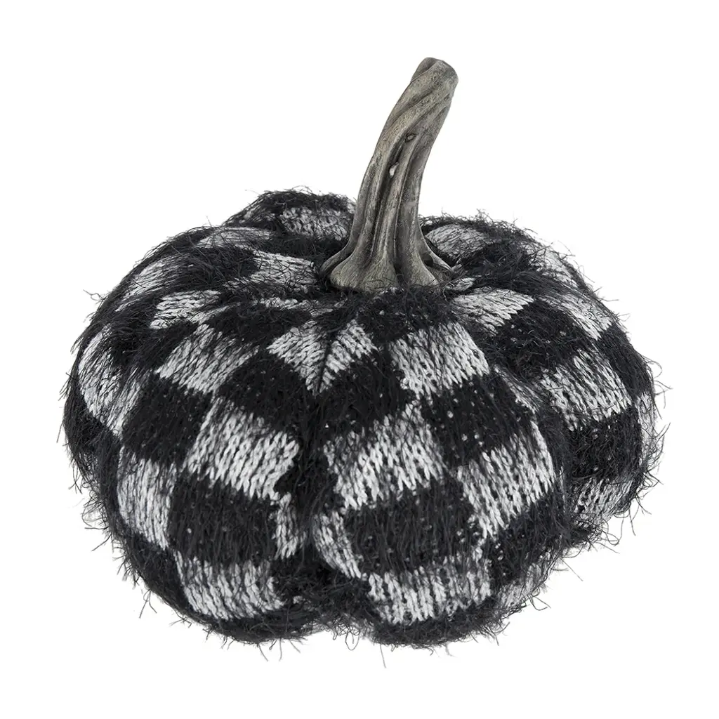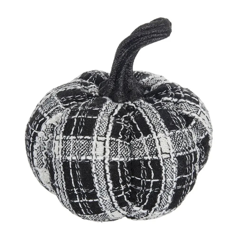 Love festive Halloween and Thanksgiving decorations but hate the mess of carving pumpkins? The Pillow Perfect Fall Indoor Buffalo Check Black & White Pumpkin 3-Dimensional Throw Pillow is the perfect way to decorate for Halloween or Thanksgiving without actually having to set foot in a pumpkin patch. This pumpkin-shaped pillow comes in a classic, black & white seasonal buffalo check. Each pumpkin has contrasting felt leaves and a burlap stem. Enjoy on your sofa, entry bench, or grab some mums and cornstalks to create your own harvest scene on your front porch. Plush recycled polyester fill will hold the pumpkin's shape so you can enjoy them year after year. Spot clean as needed using mild detergent and let air dry.